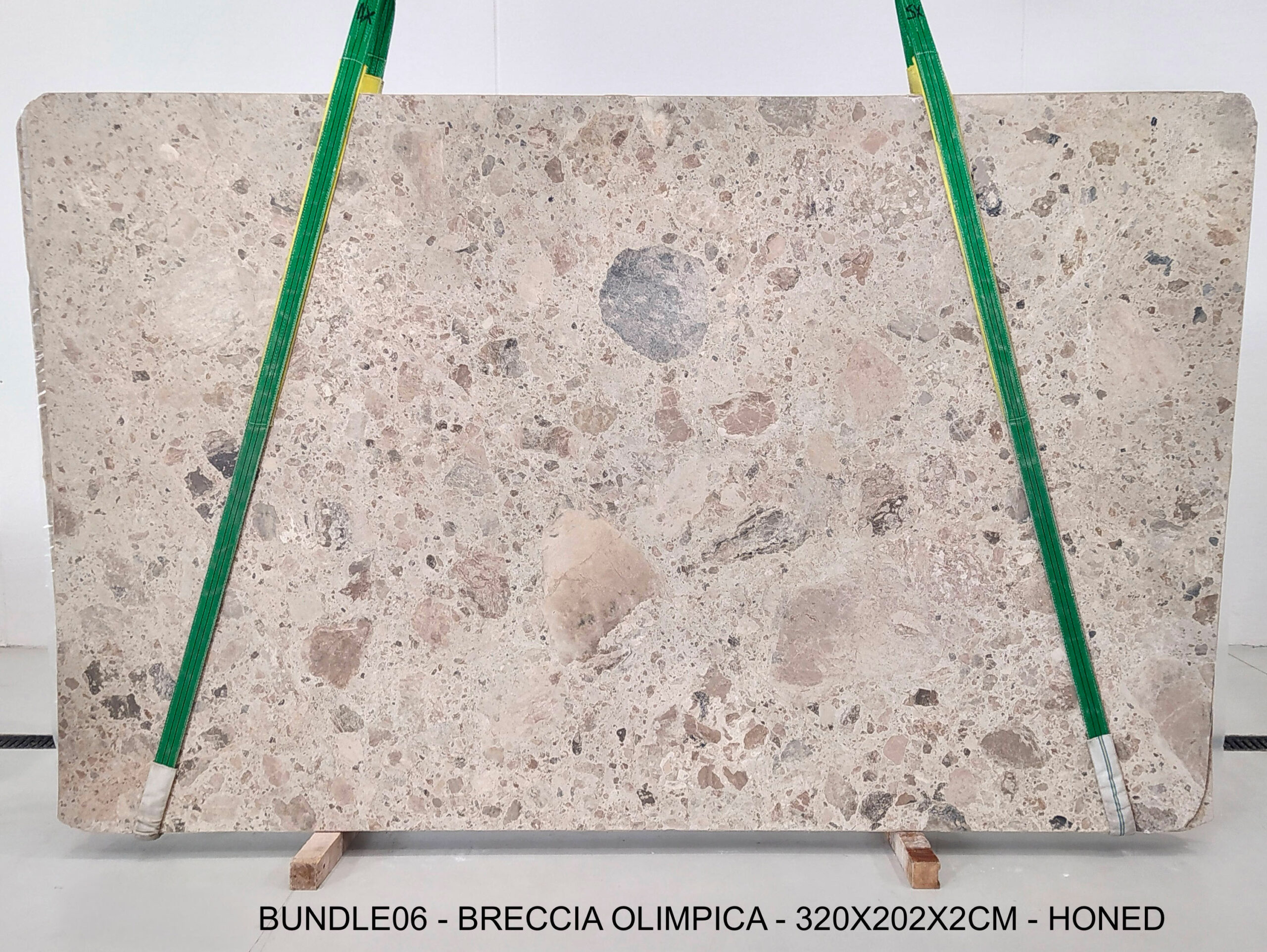BRECCIA OLIMPICA (PLST1320) Quantity Available: 35 Dimension: 320X202; Thickness: 2CM Finish: HONED FINISH