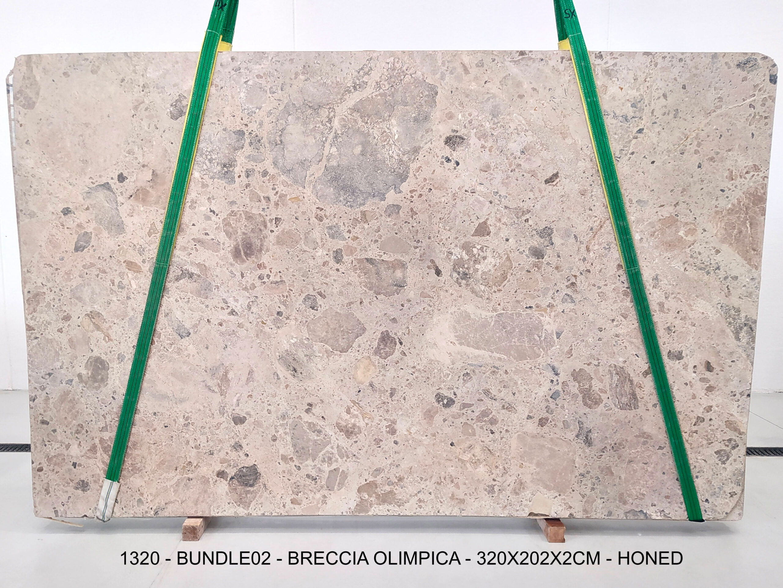 BRECCIA OLIMPICA (PLST1320) Quantity Available: 6 Dimension: 320X202; Thickness: 2CM Finish: HONED FINISH