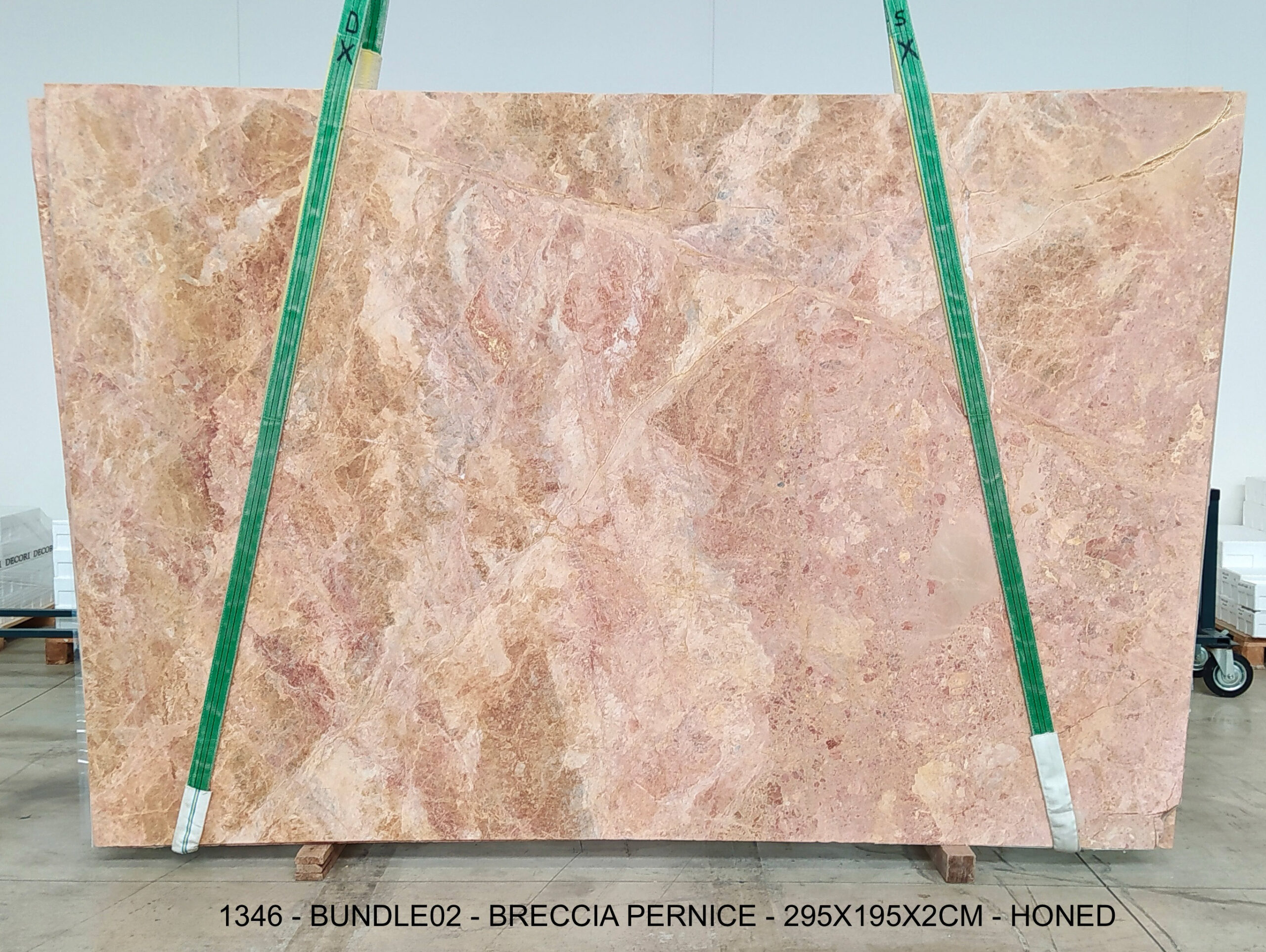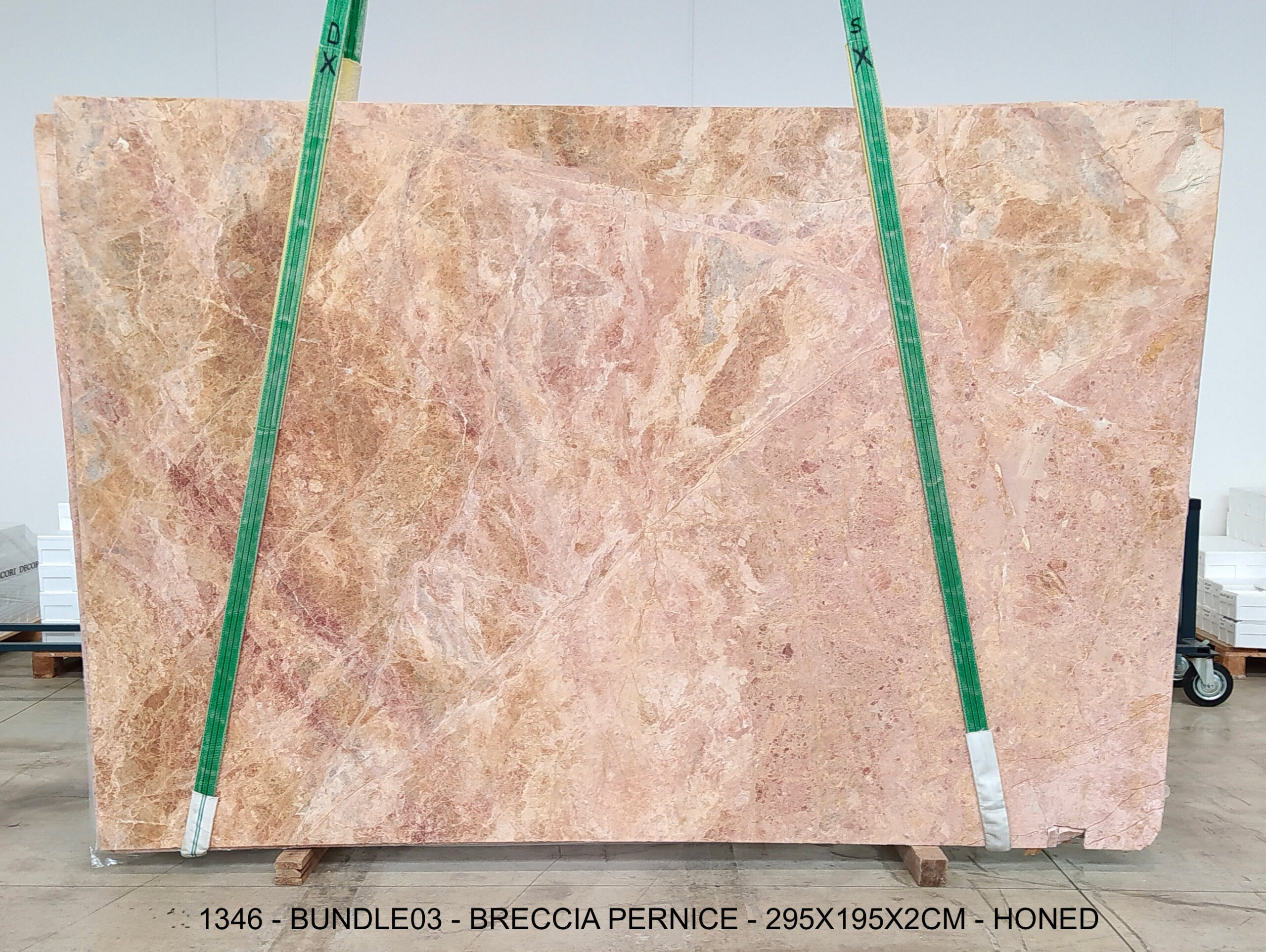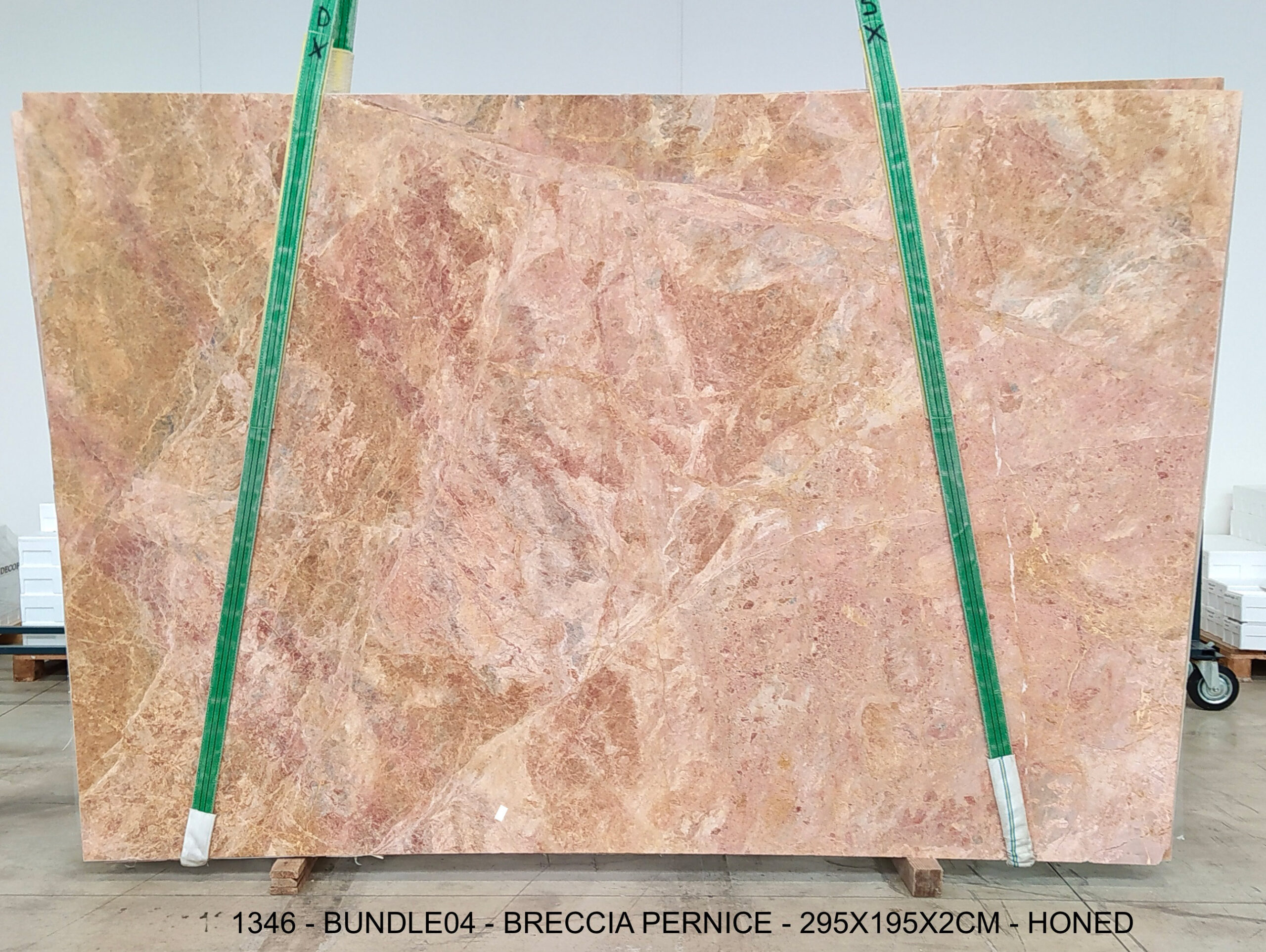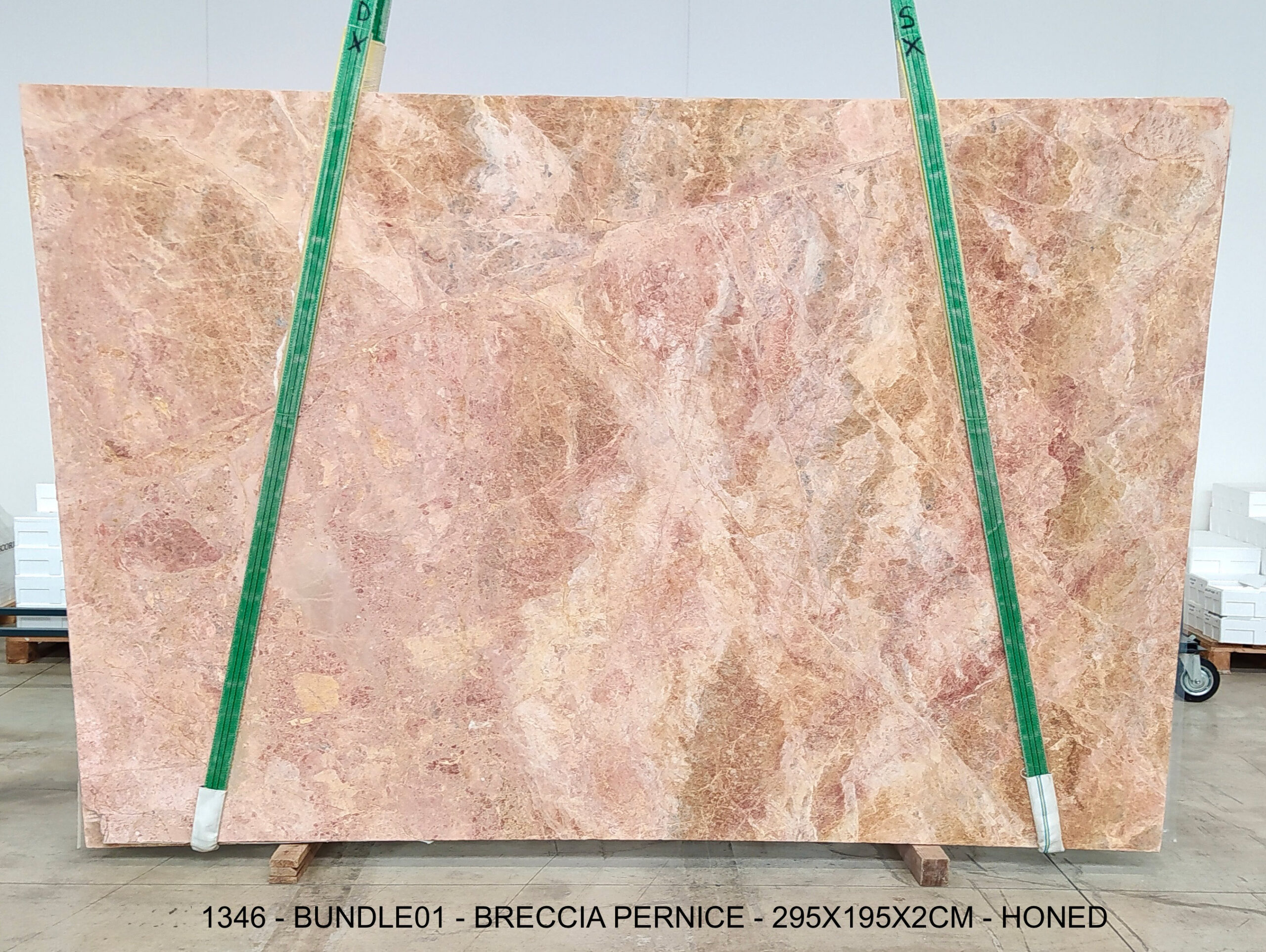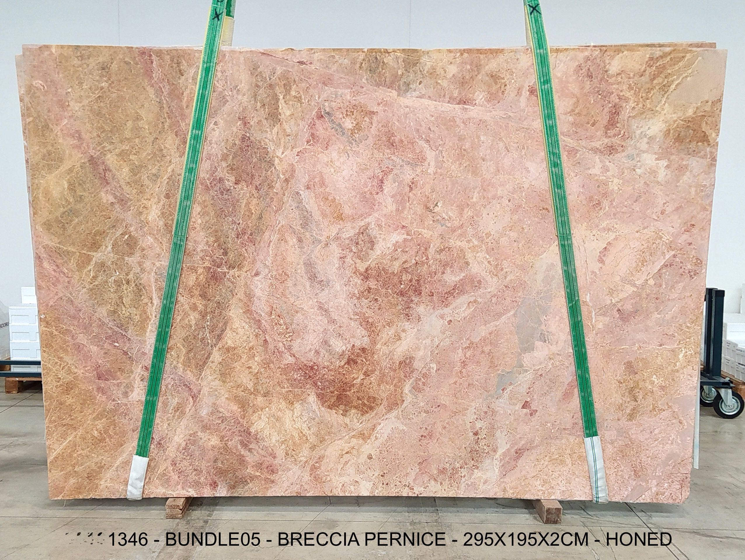 BRECCIA PERNICE (PLST1346) Quantity Available: 55 Dimension: 195X200; Thickness: 2CM Finish: HONED FINISH