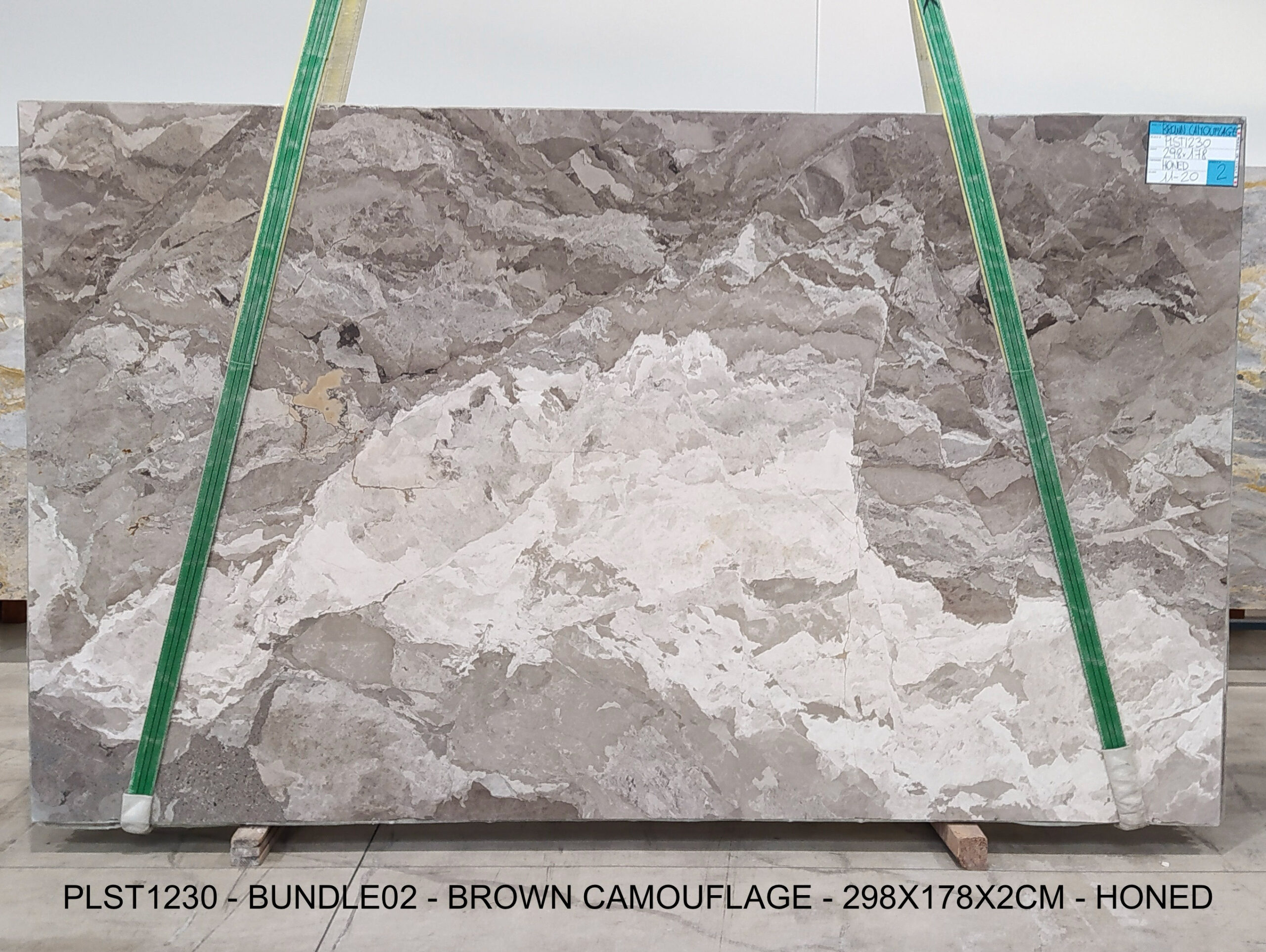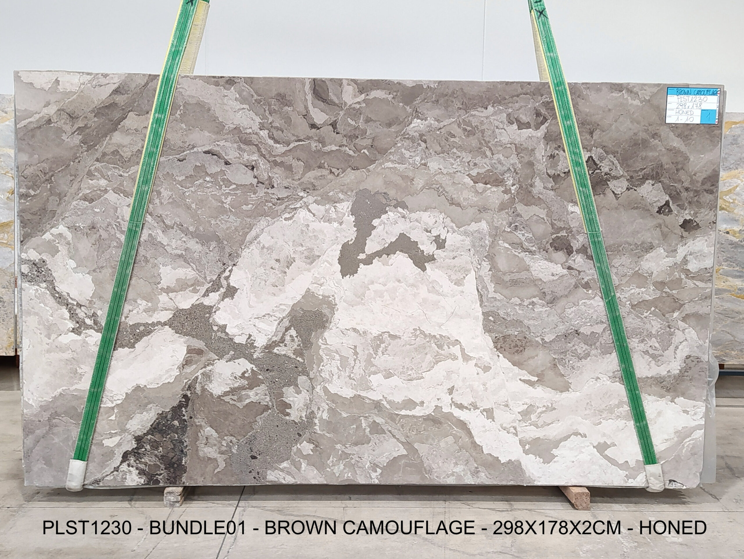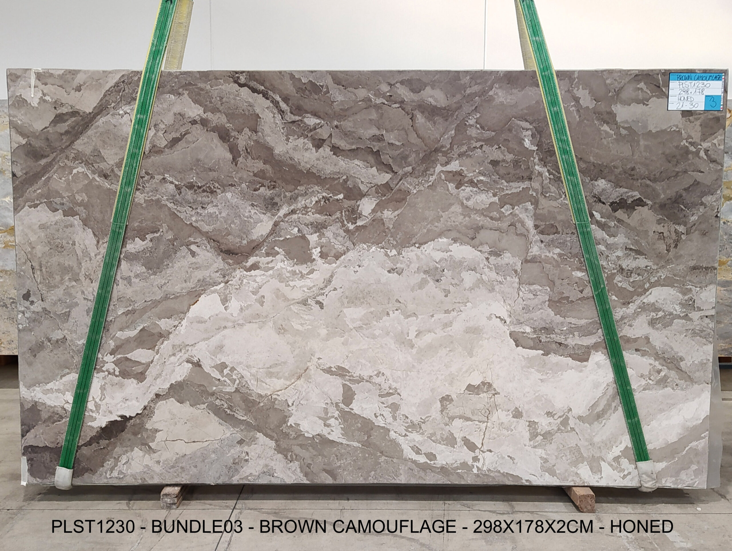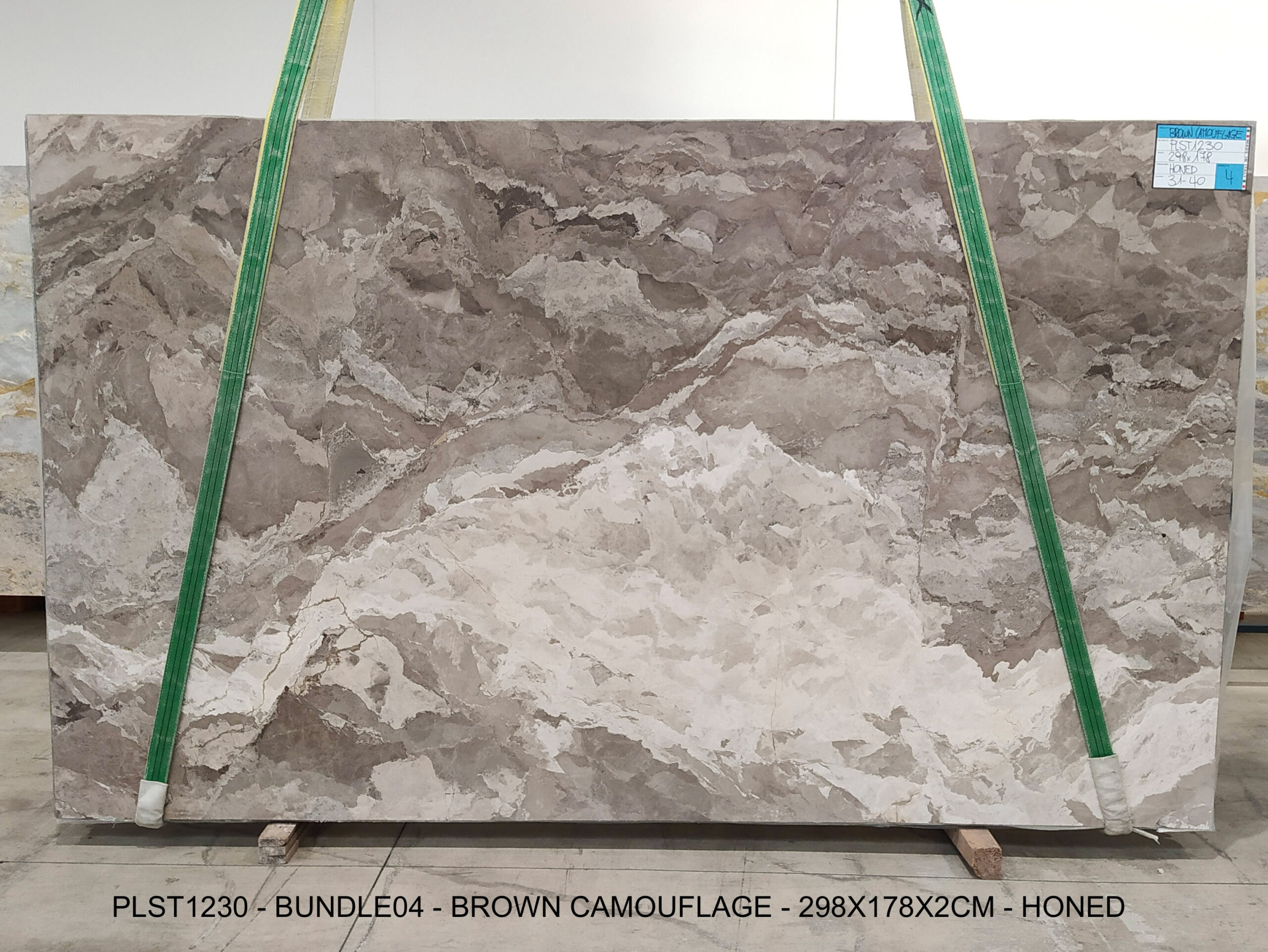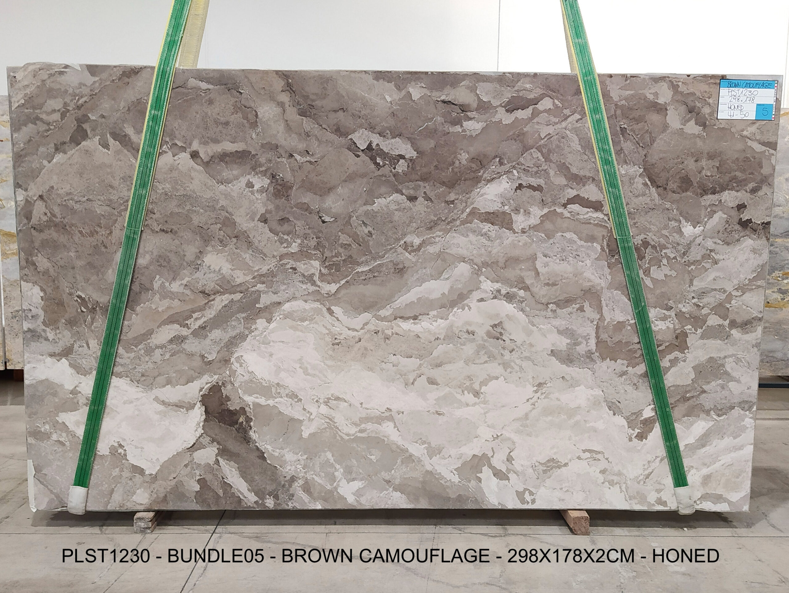 BROWN CAMOUFLAGE (PLST1230) Quantity Available: 80 Dimension: 298X178; Thickness: 2CM Finish: HONED FINISH