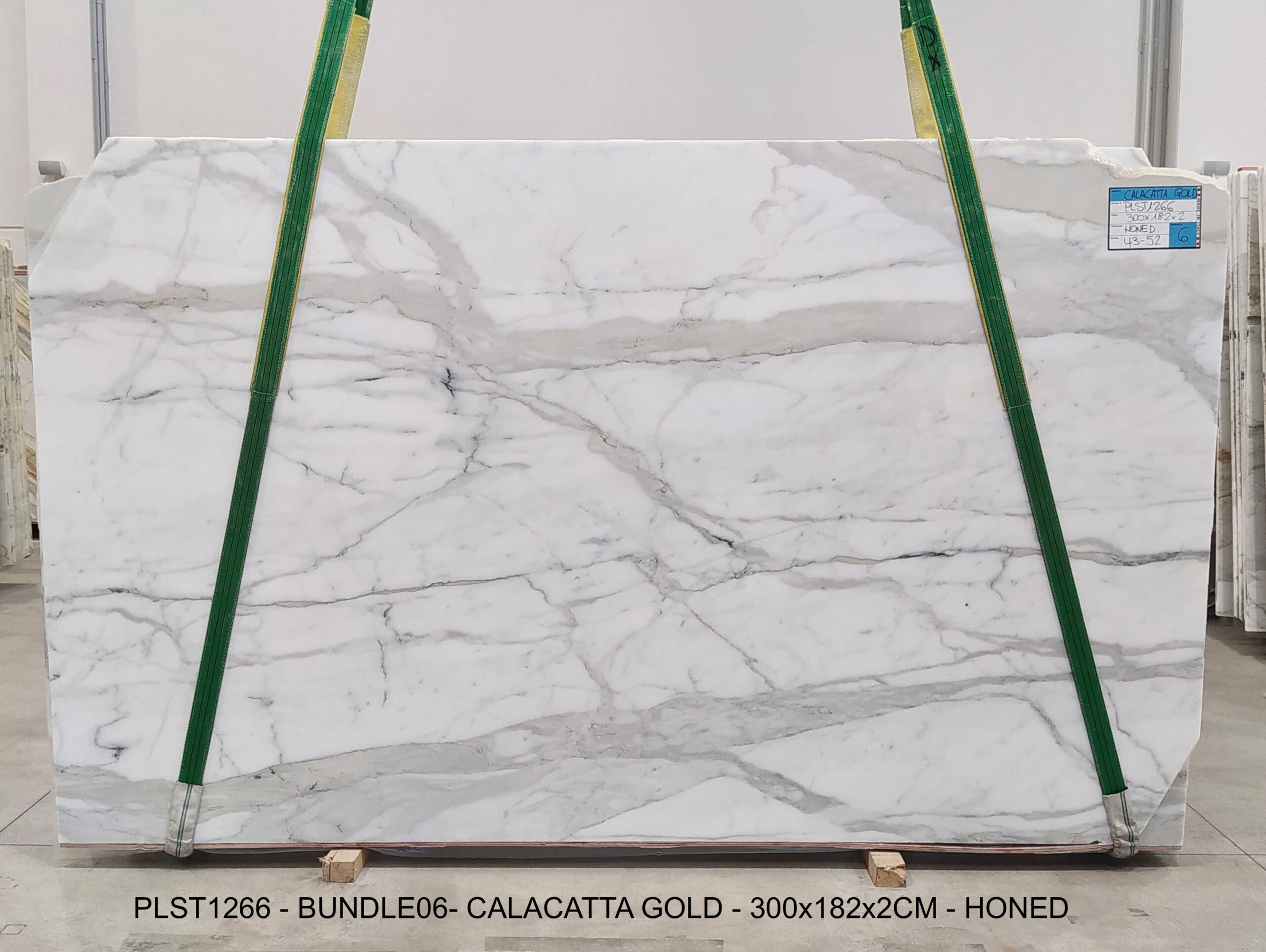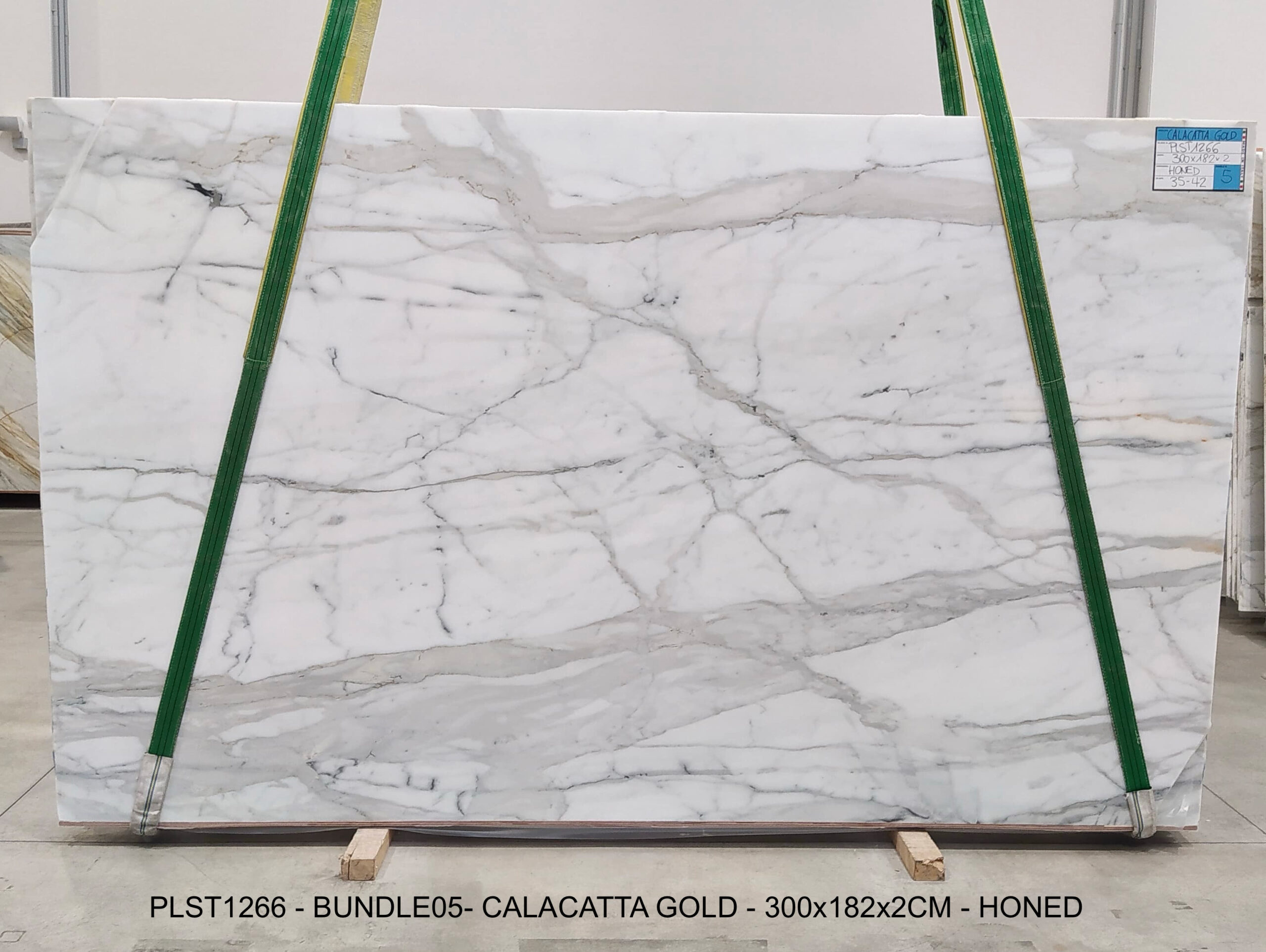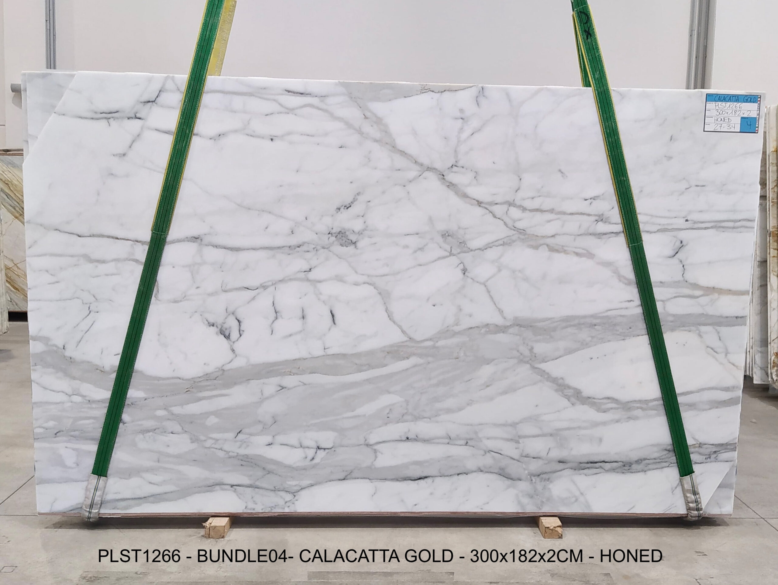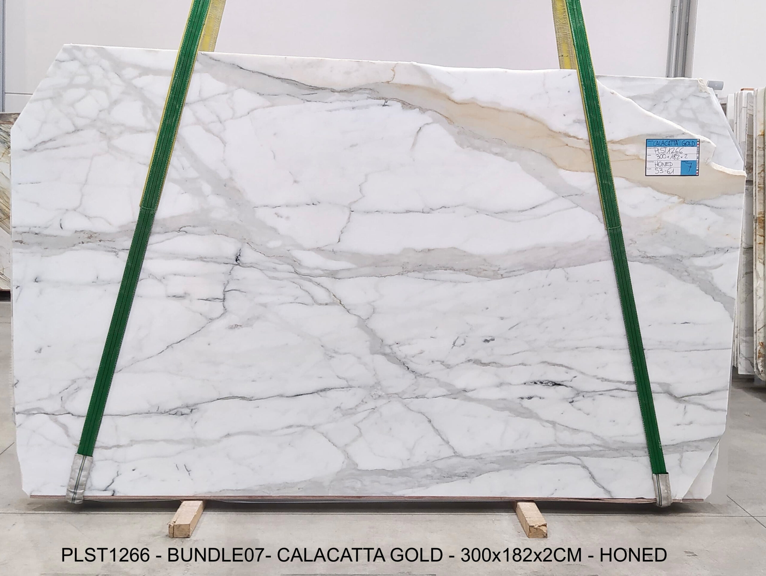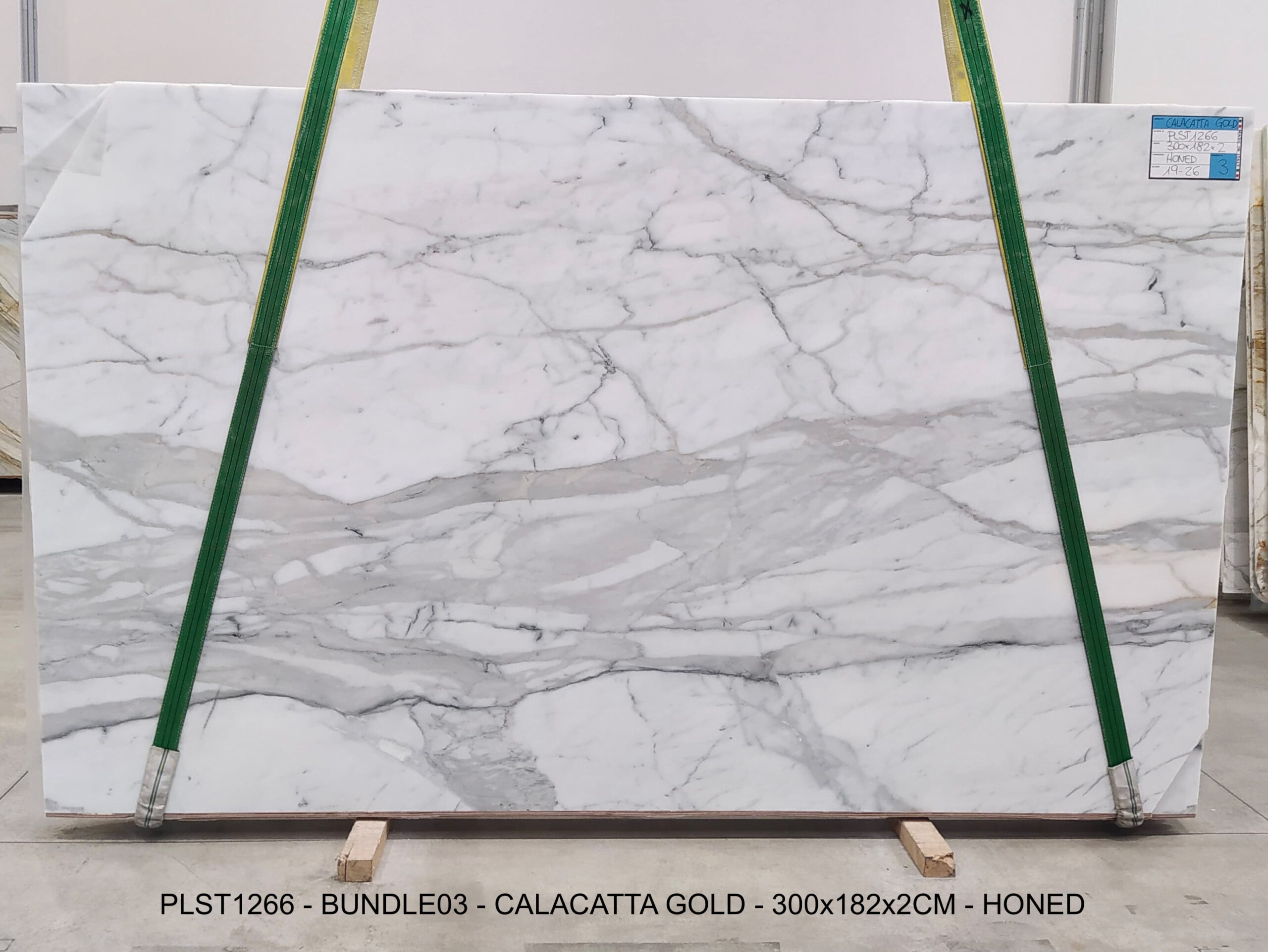 CALACATTA GOLD (PLST1266) Quantity Available: 61 Dimension: 300X182; Thickness: 2CM Finish: HONED FINISH