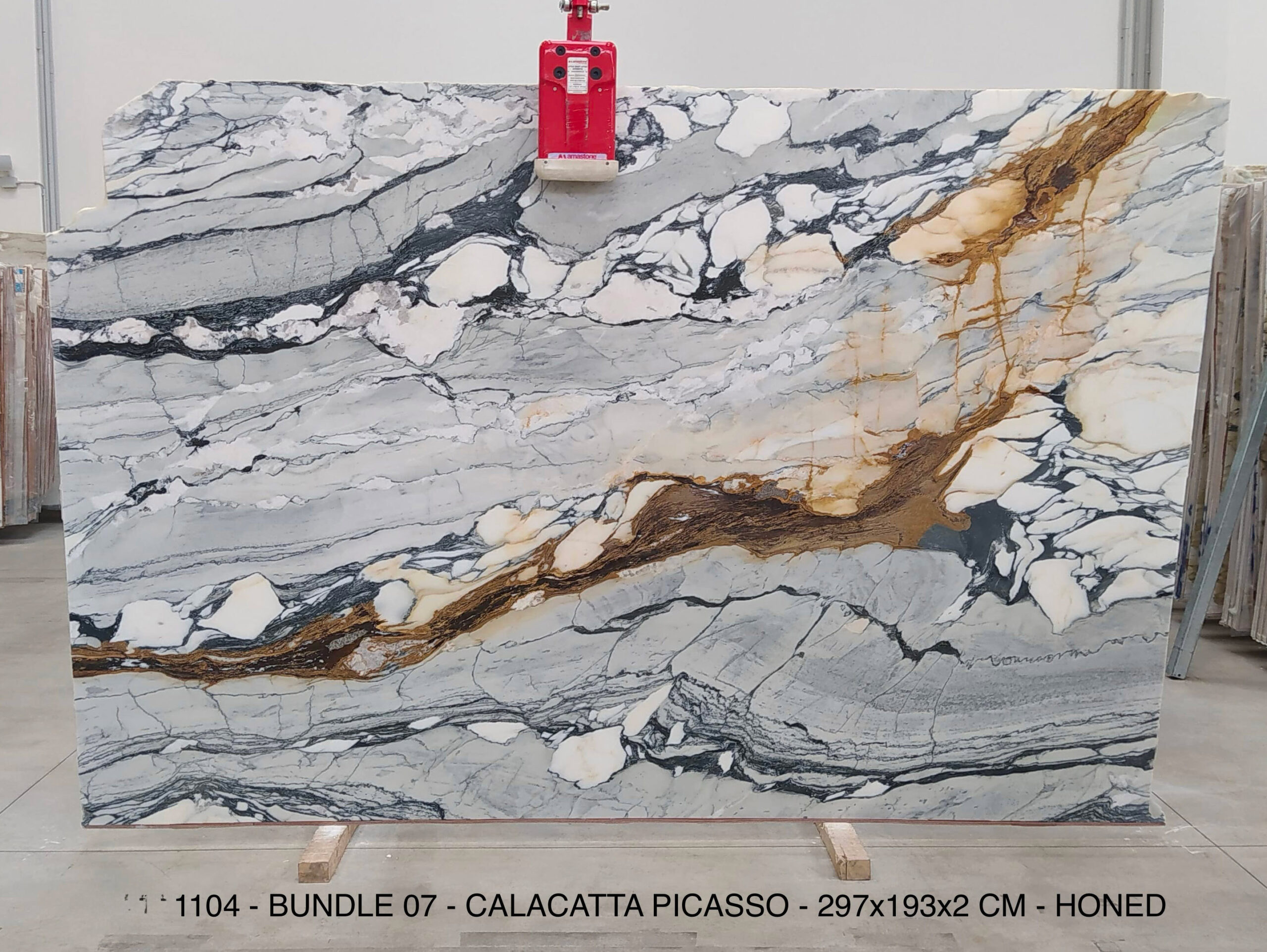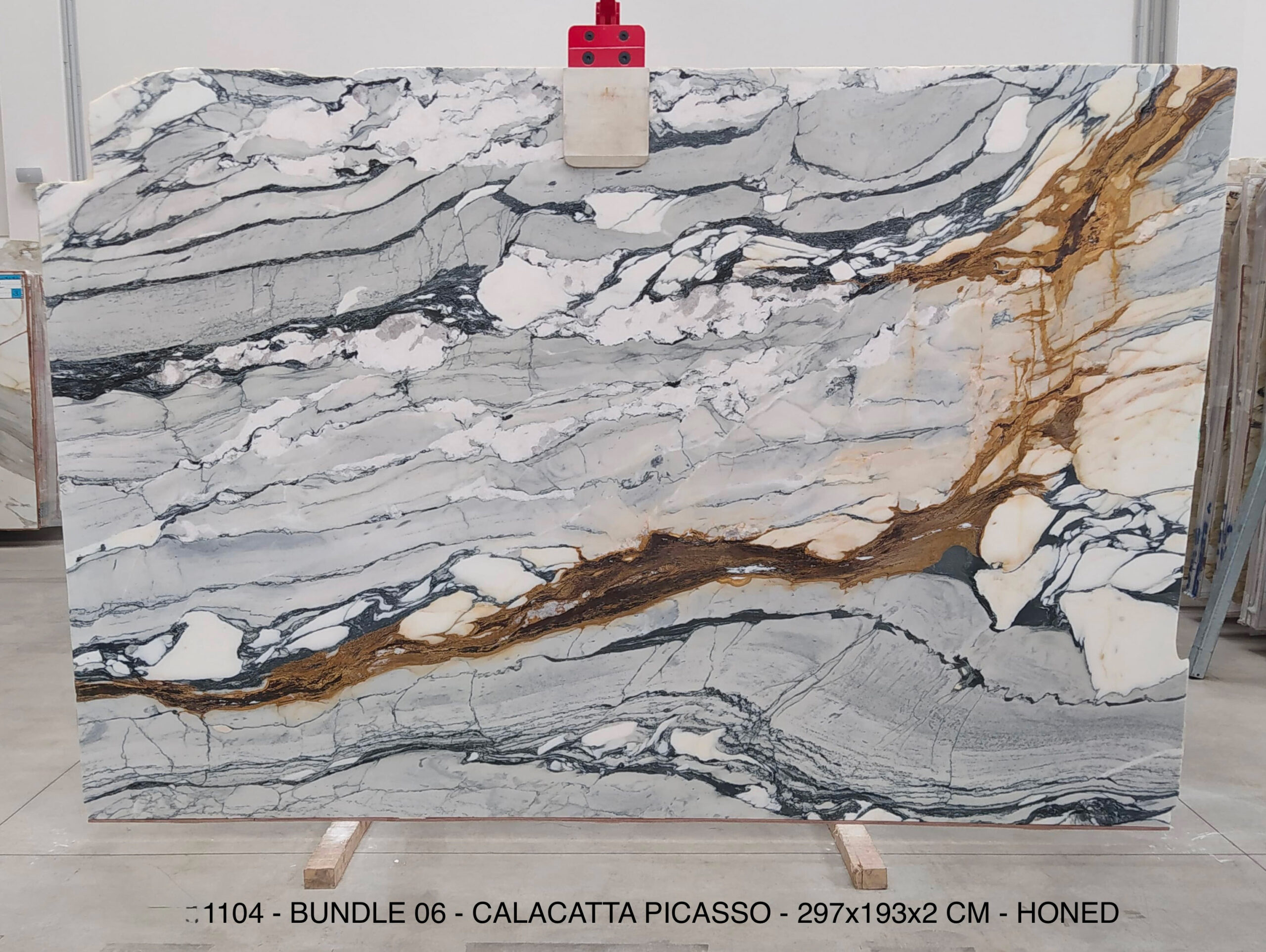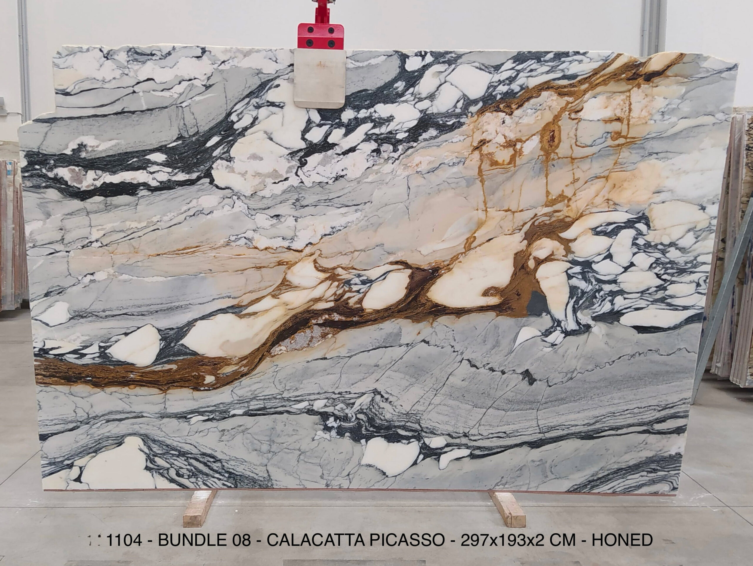 CALACATTA PICASSO (PLST1104) Quantity Available: 22 Dimension: 297X193; Thickness: 2CM Finish: HONED FINISH