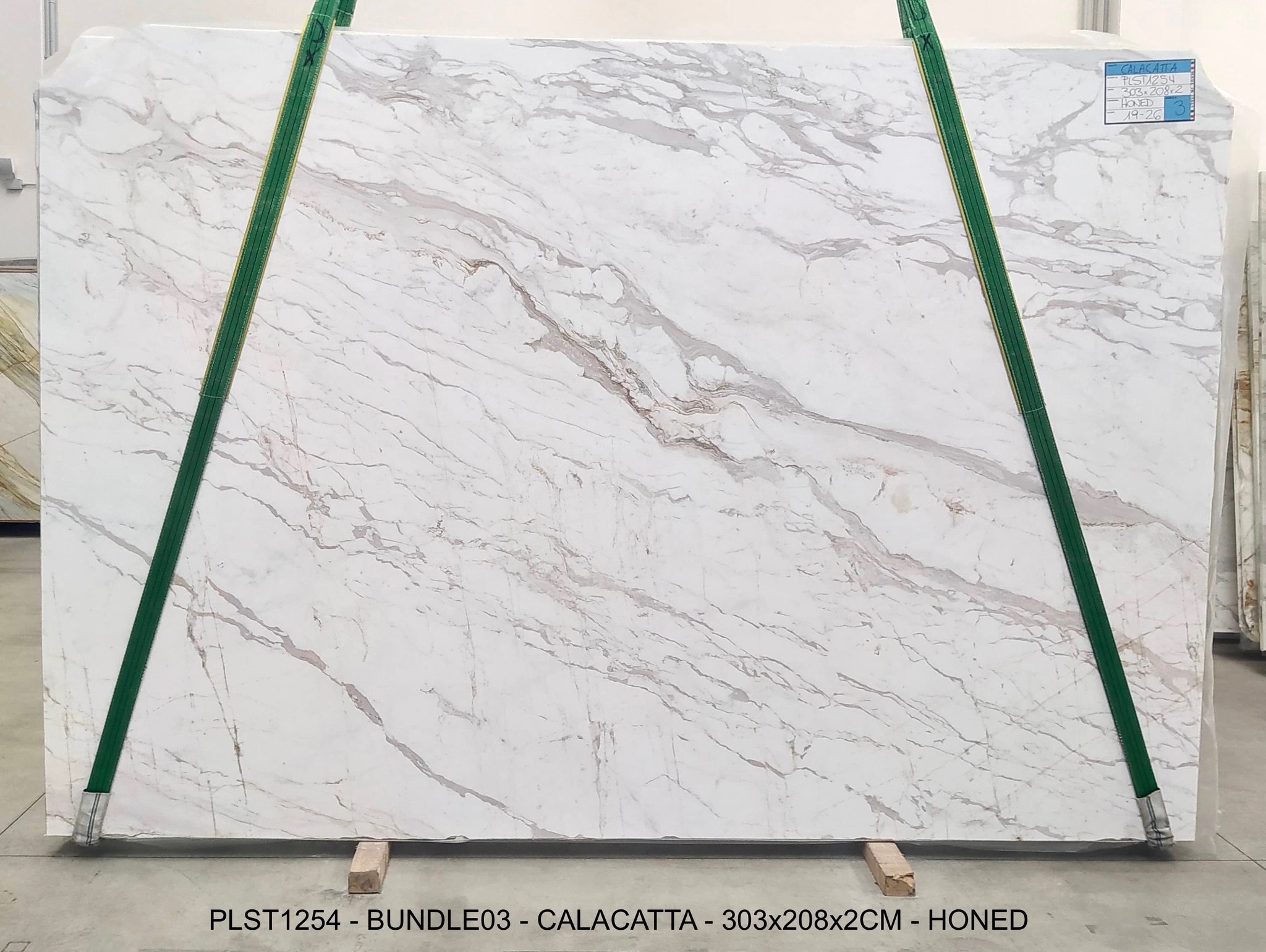 CALACATTA (PLST1254) Quantity Available: 67 Dimension: 303X208; Thickness: 2CM Finish: HONED FINISH