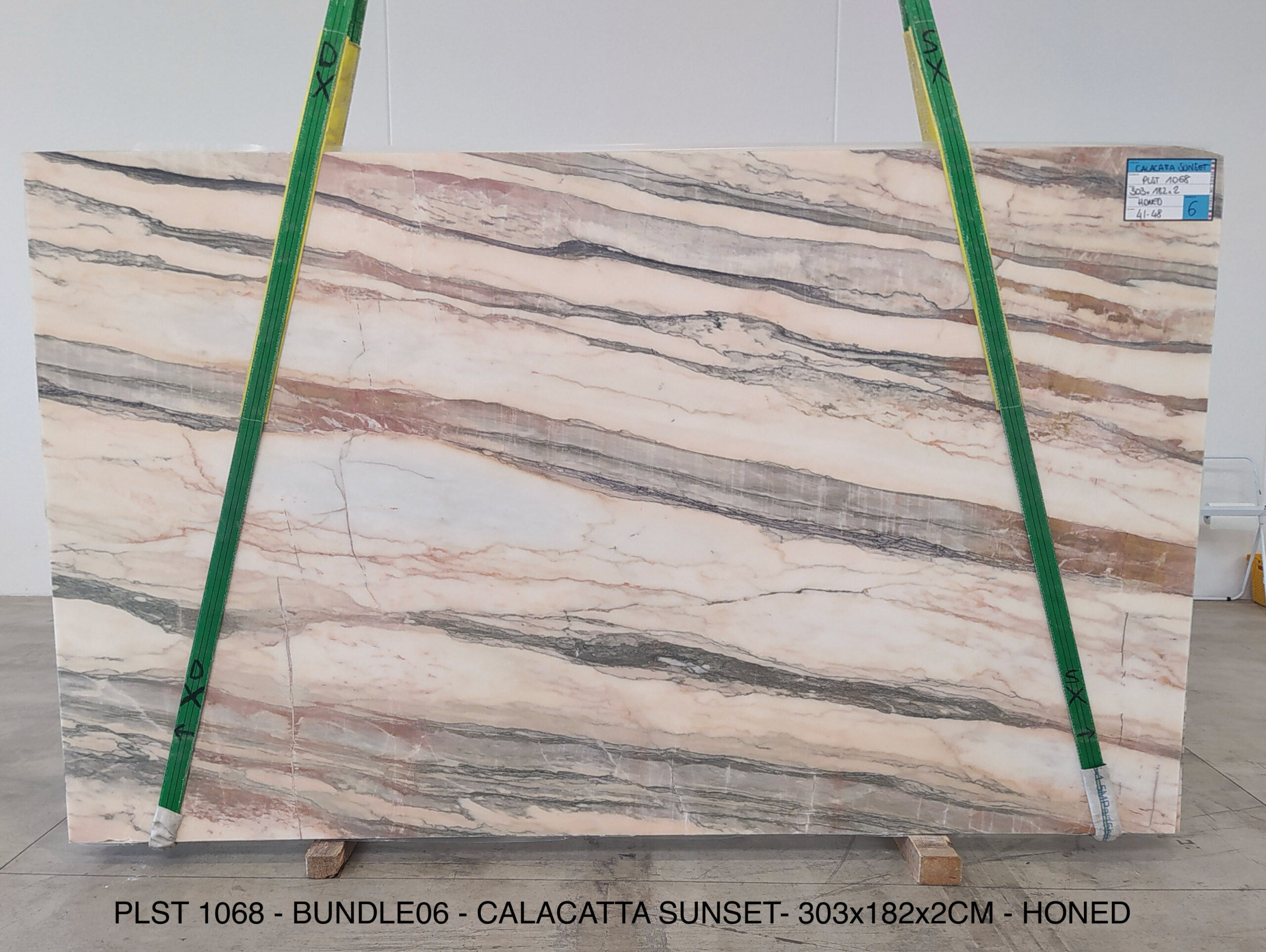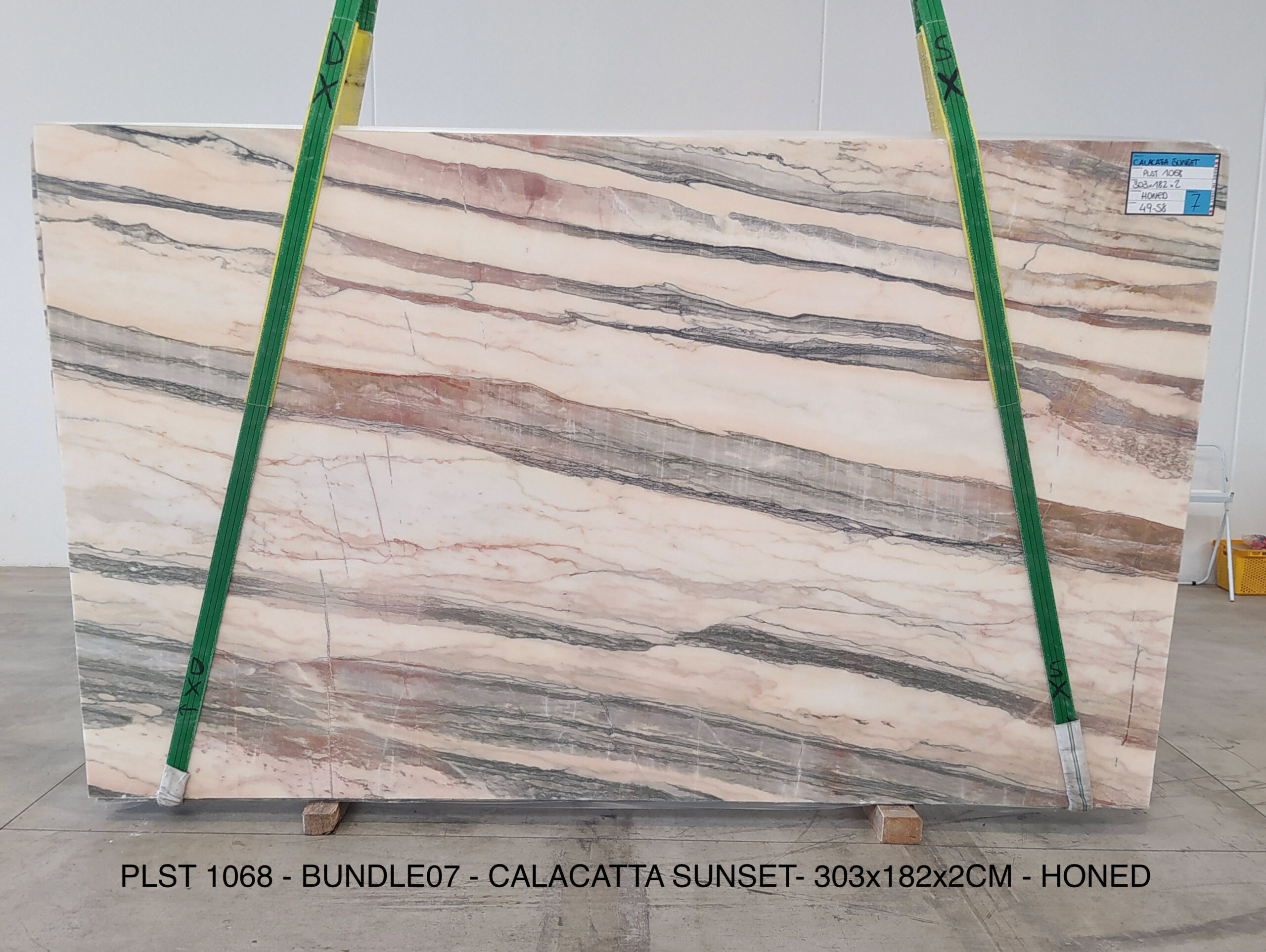 CALACATTA SUNSET (PLST1068) Quantity Available: 53 Dimension: 303X182; Thickness: 2CM Finish: HONED FINISH