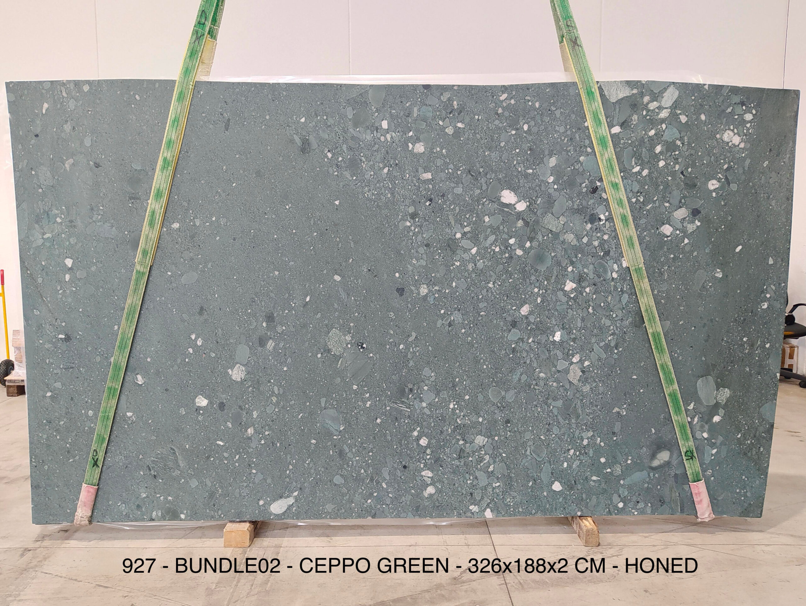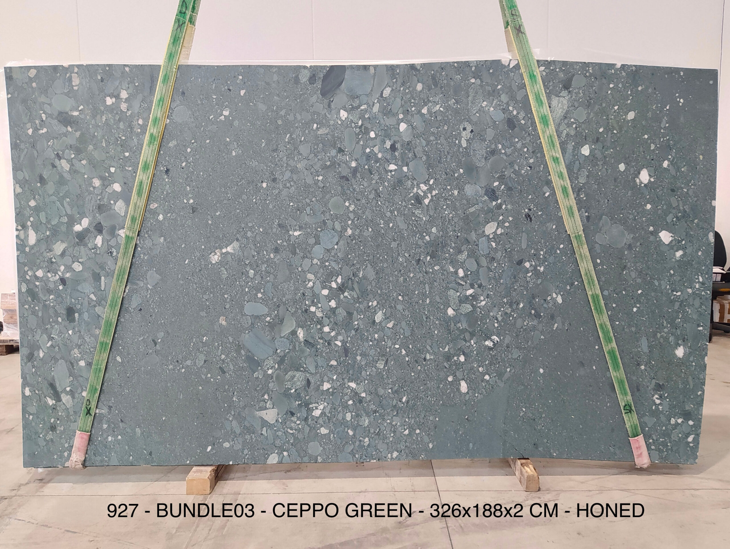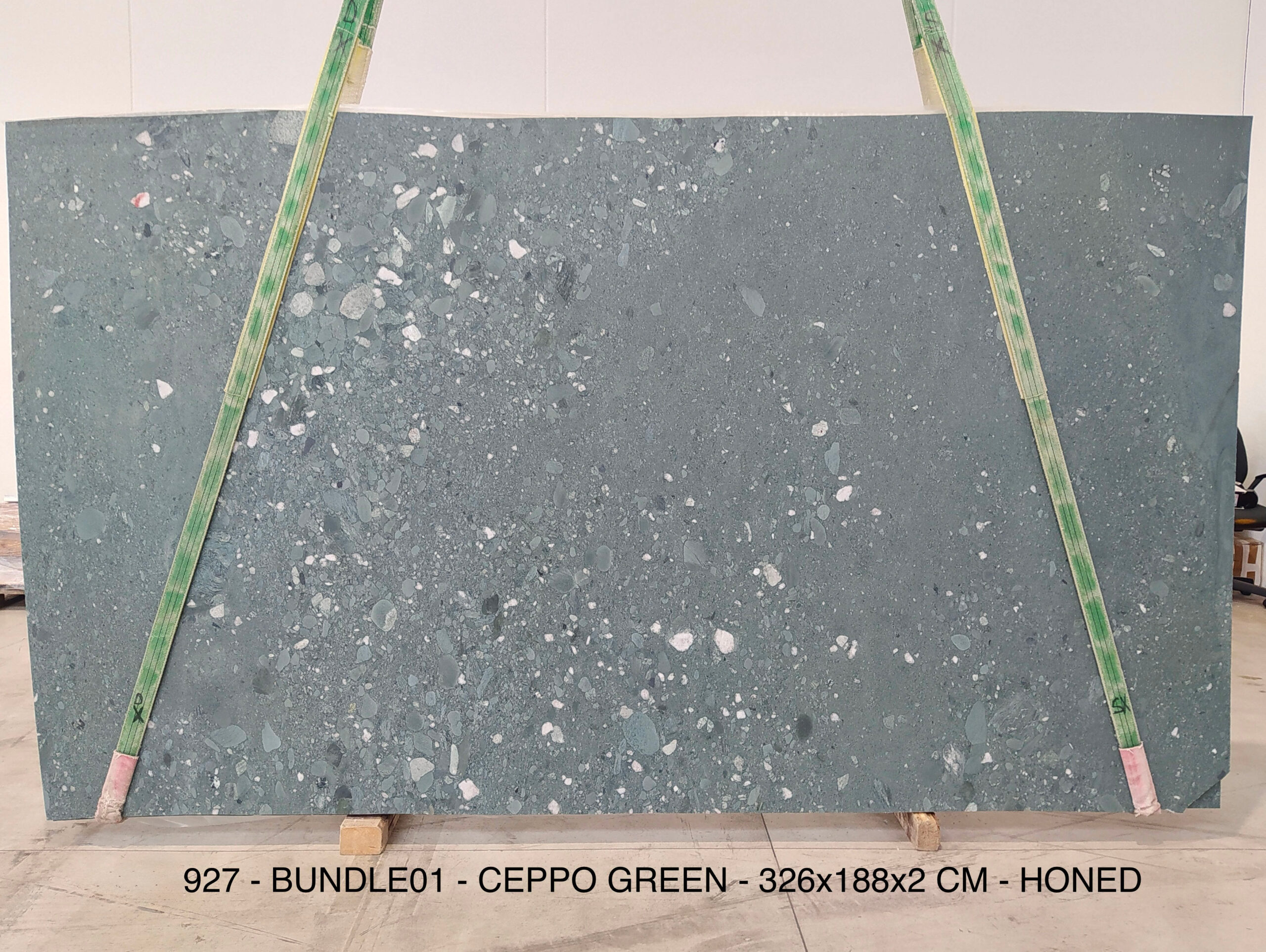 CEPPO GREEN (PLST927) Quantity Available: 19 Dimension: 326X188; Thickness: 2CM Finish: HONED FINISH