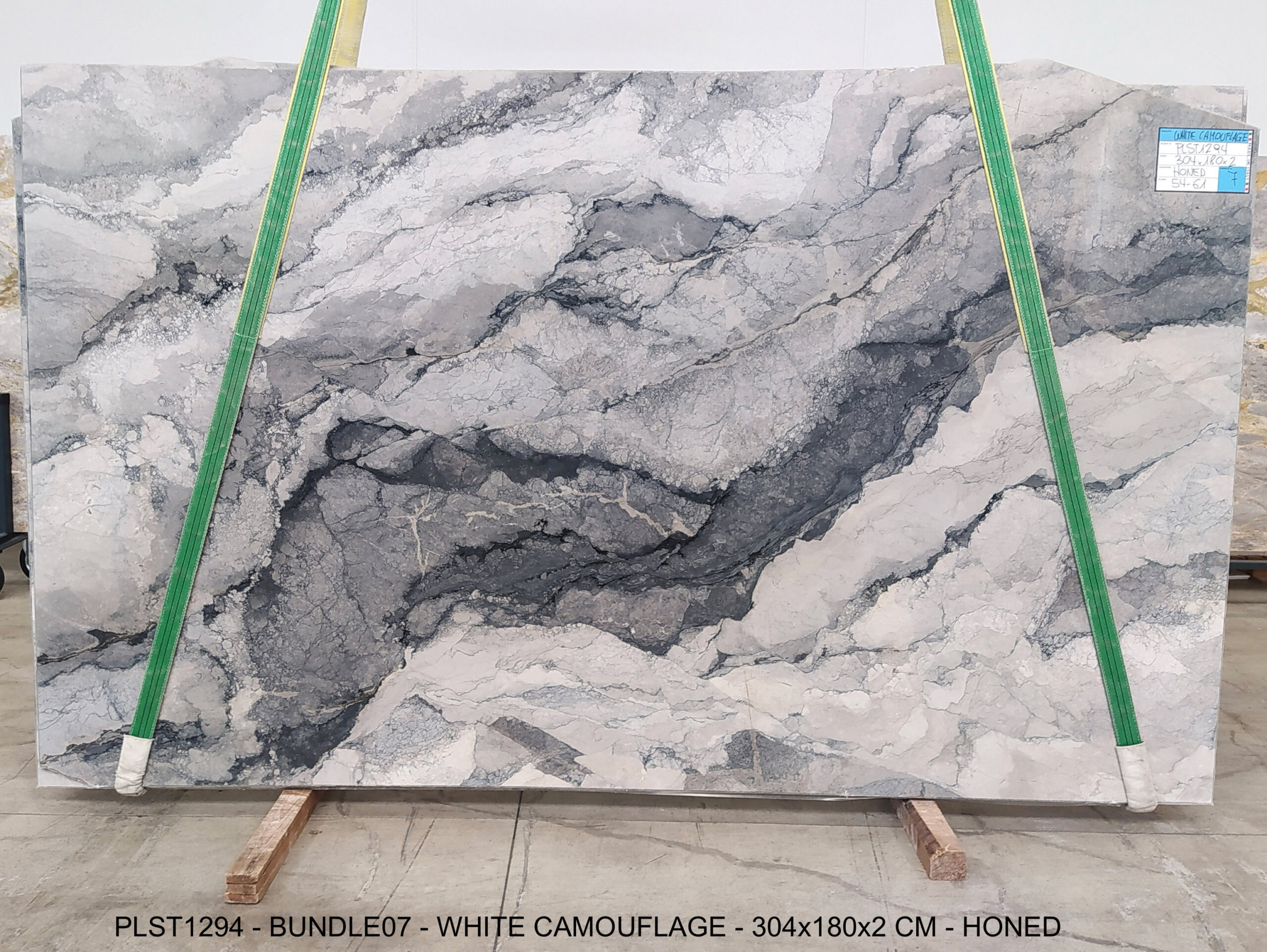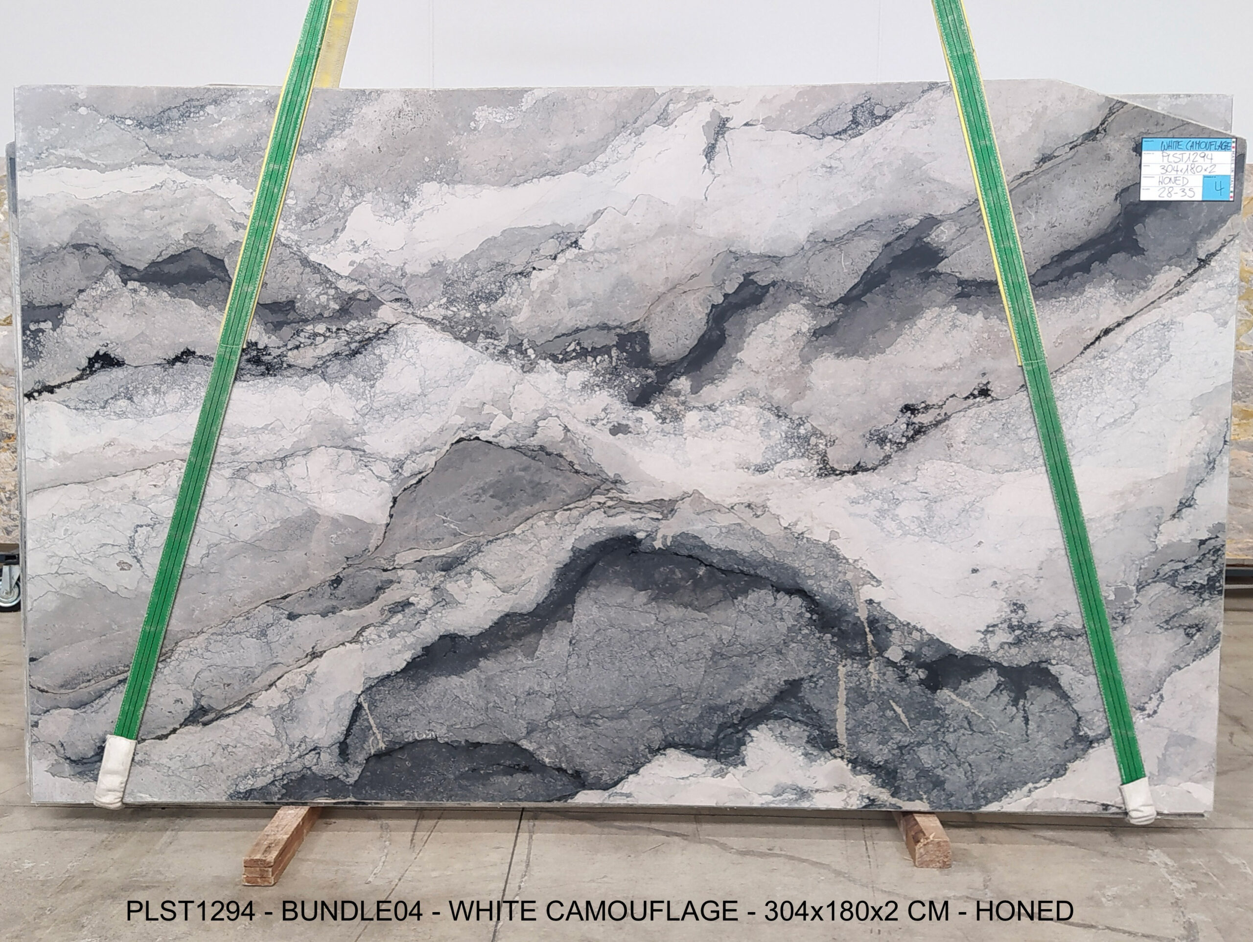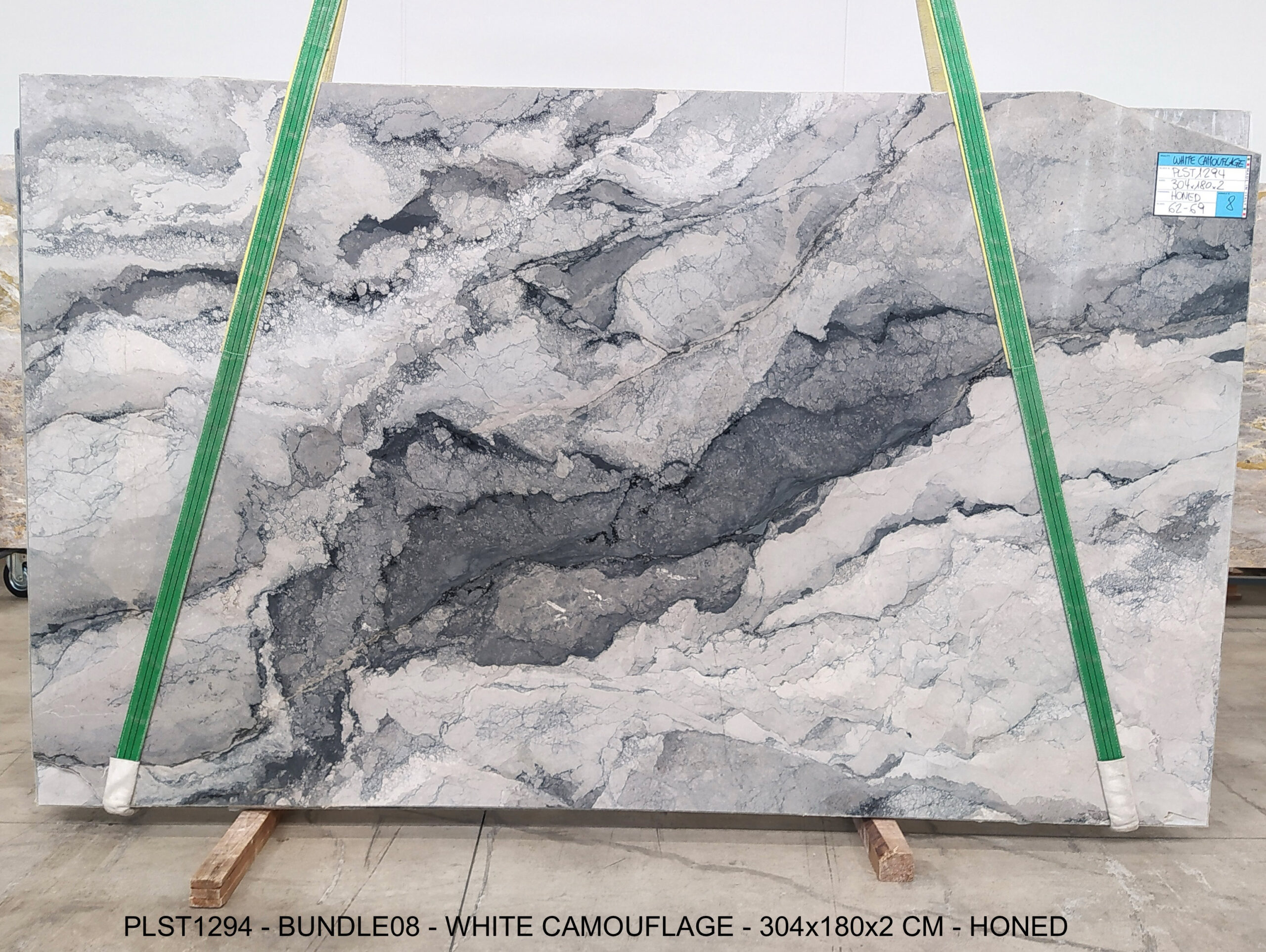 WHITE CAMOUFLAGE EXTRA (PLST1294) Quantity Available: 52 Dimension: 304X180; Thickness: 2CM Finish: HONED FINISH