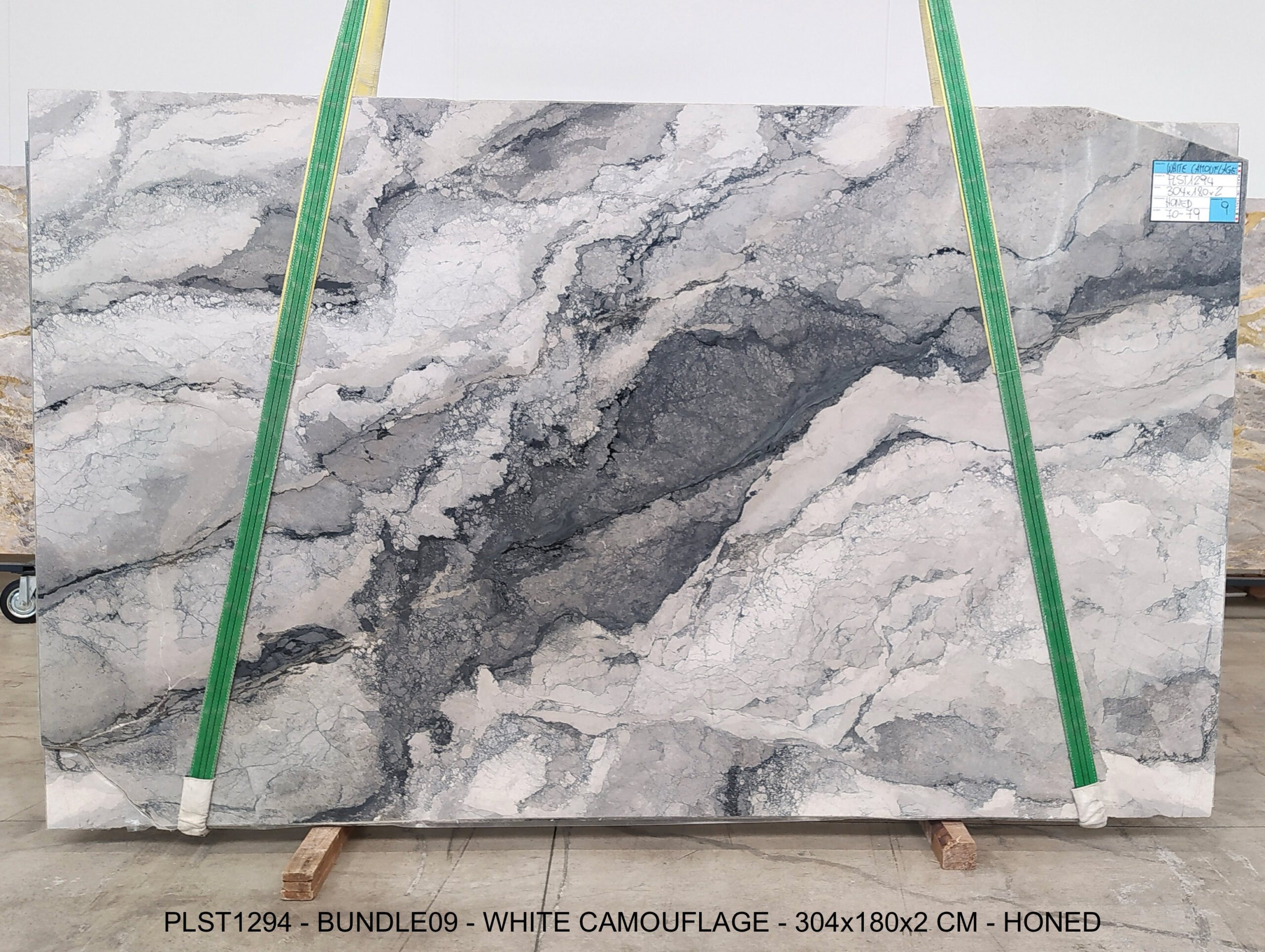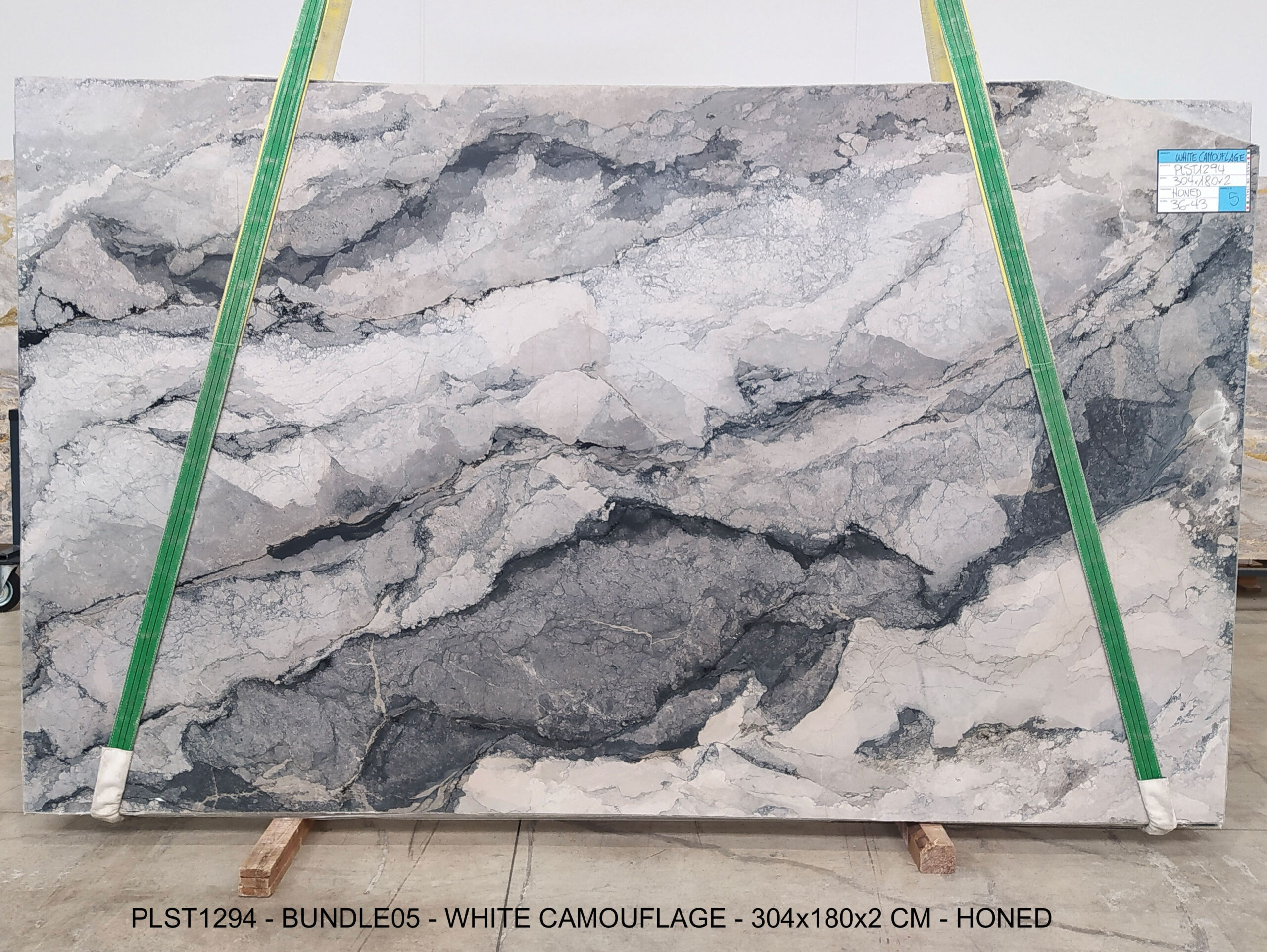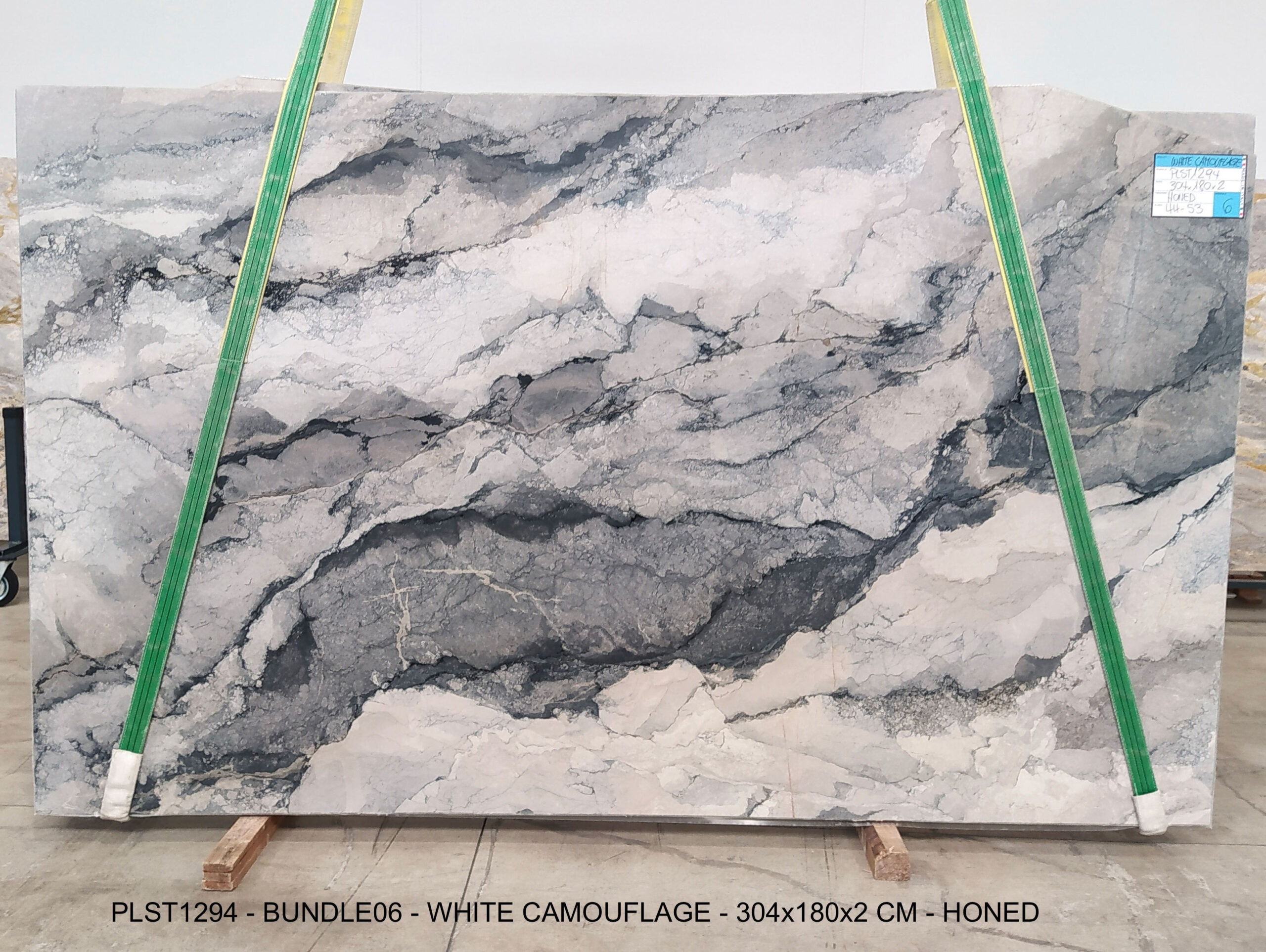 WHITE CAMOUFLAGE EXTRA (PLST1294) Quantity Available: 52 Dimension: 304X180; Thickness: 2CM Finish: HONED FINISH