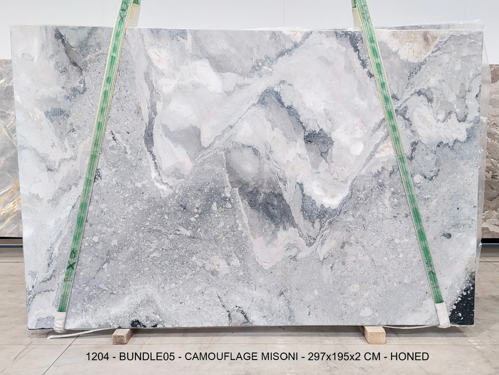 CAMOUFLAGE MISONI (PLST1204) Quantity Available: 11 Dimension: 297X195; Thickness: 2CM Finish: HONED FINISH