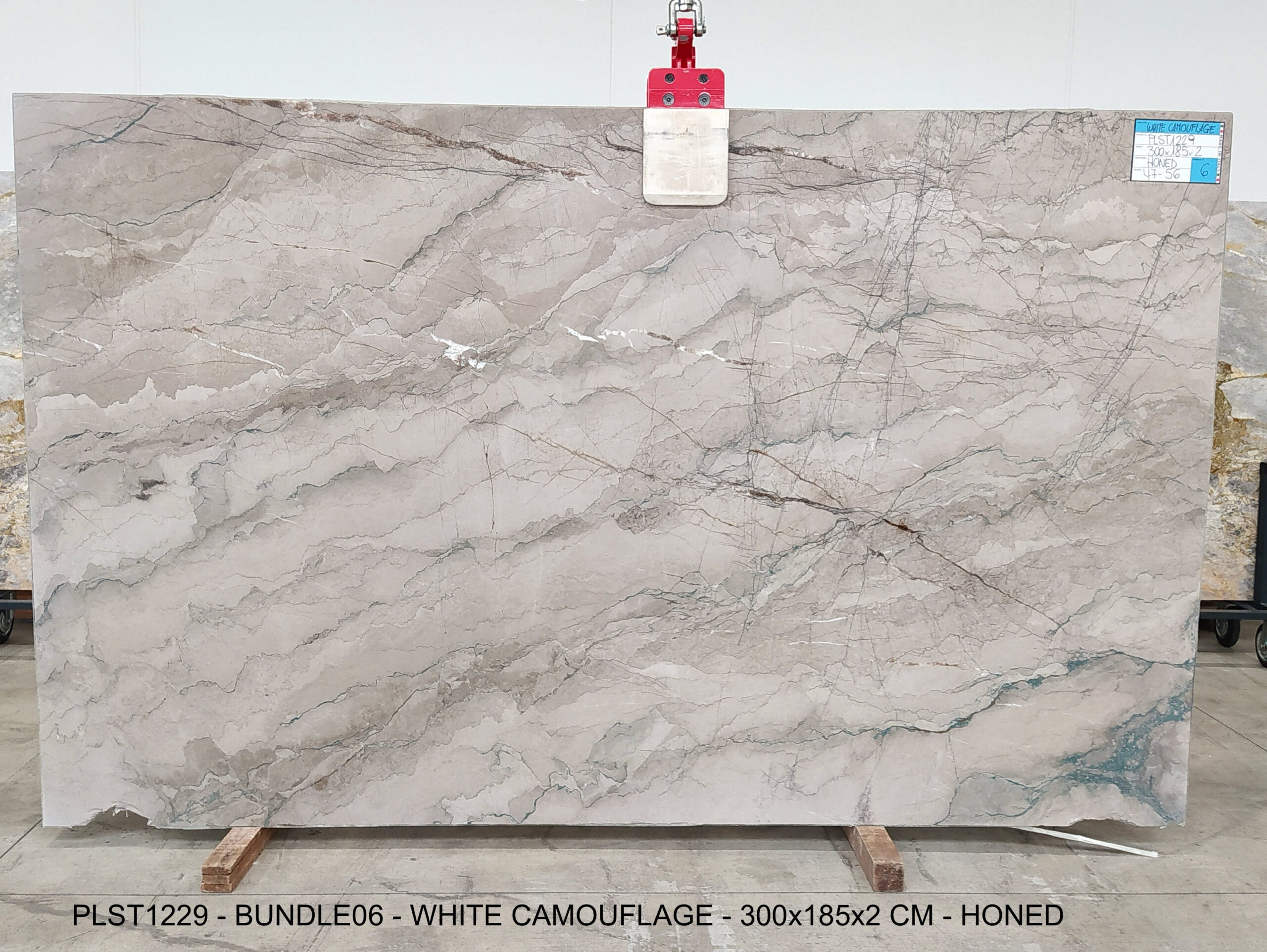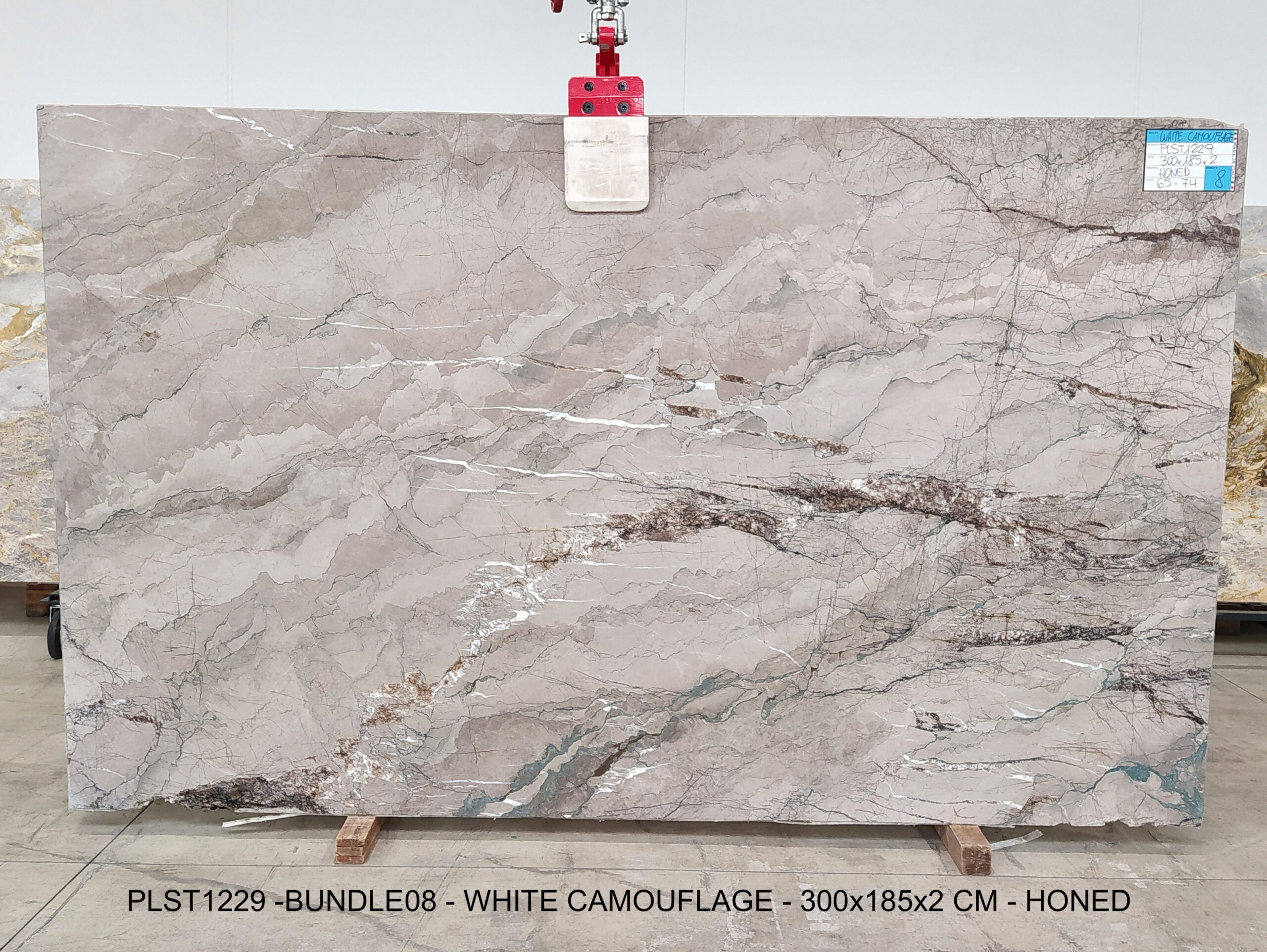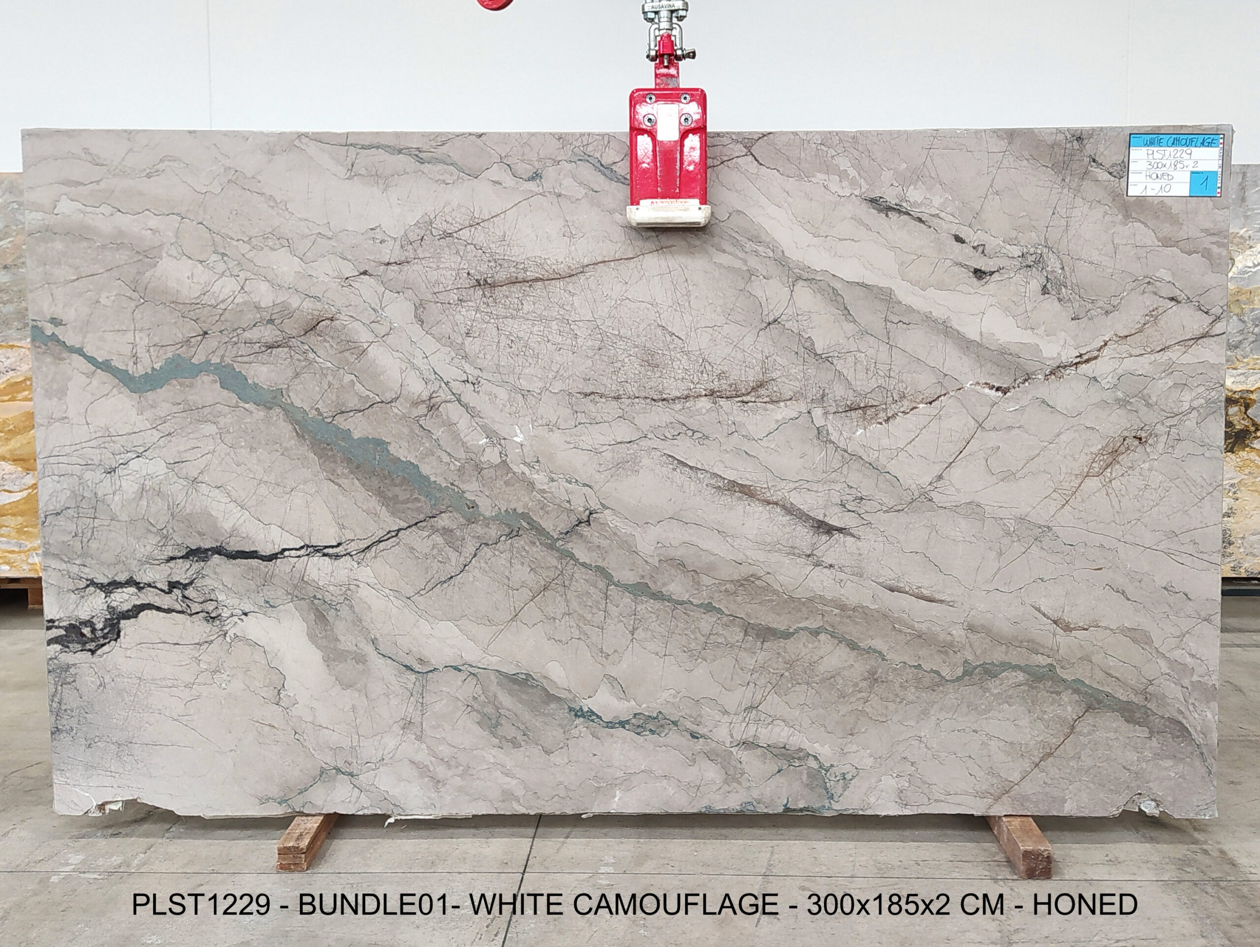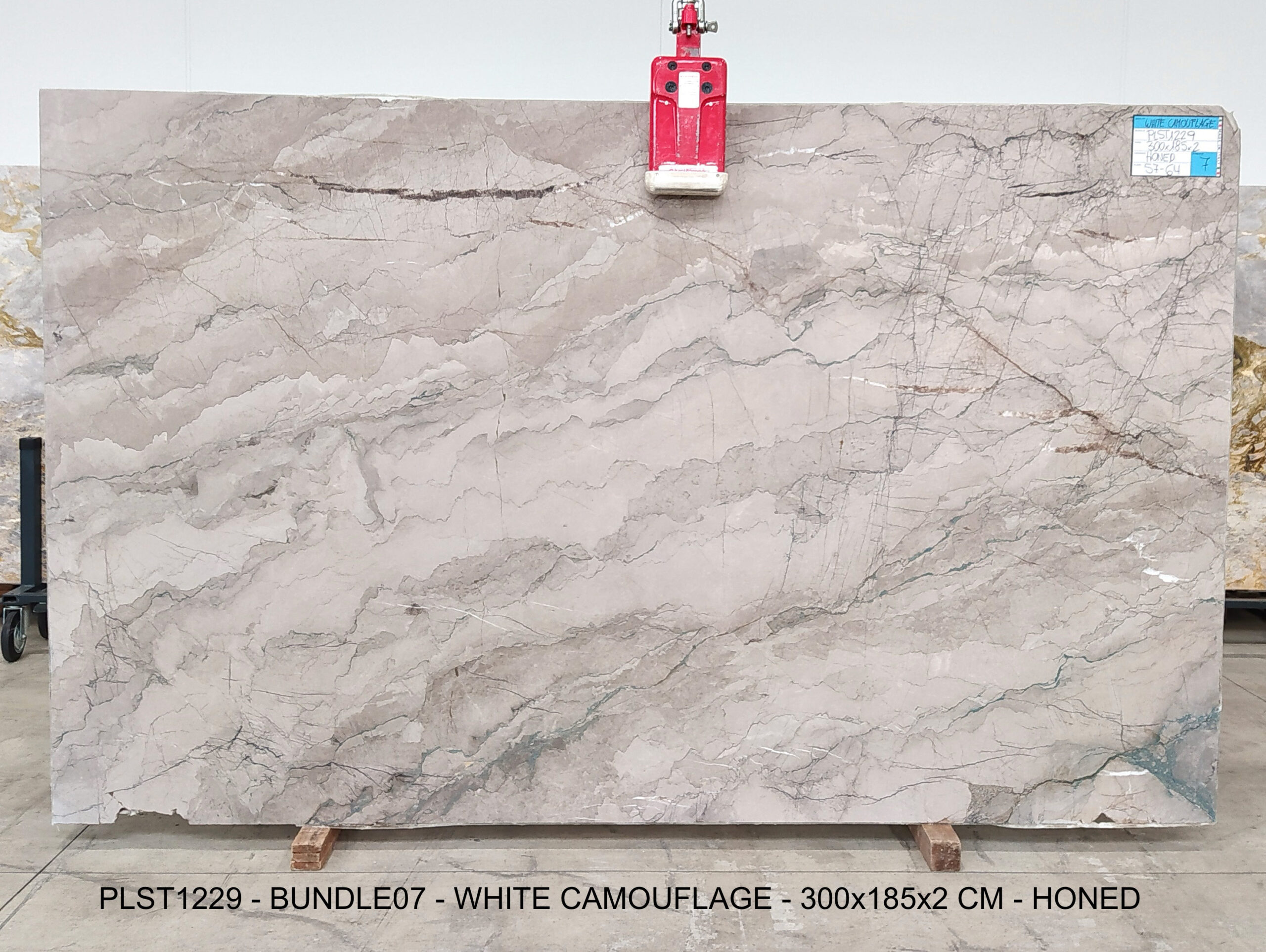WHITE CAMOUFLAGE (PLST1229) Quantity Available: 57 Dimension: 300X185; Thickness: 2CM Finish: HONED FINISH
