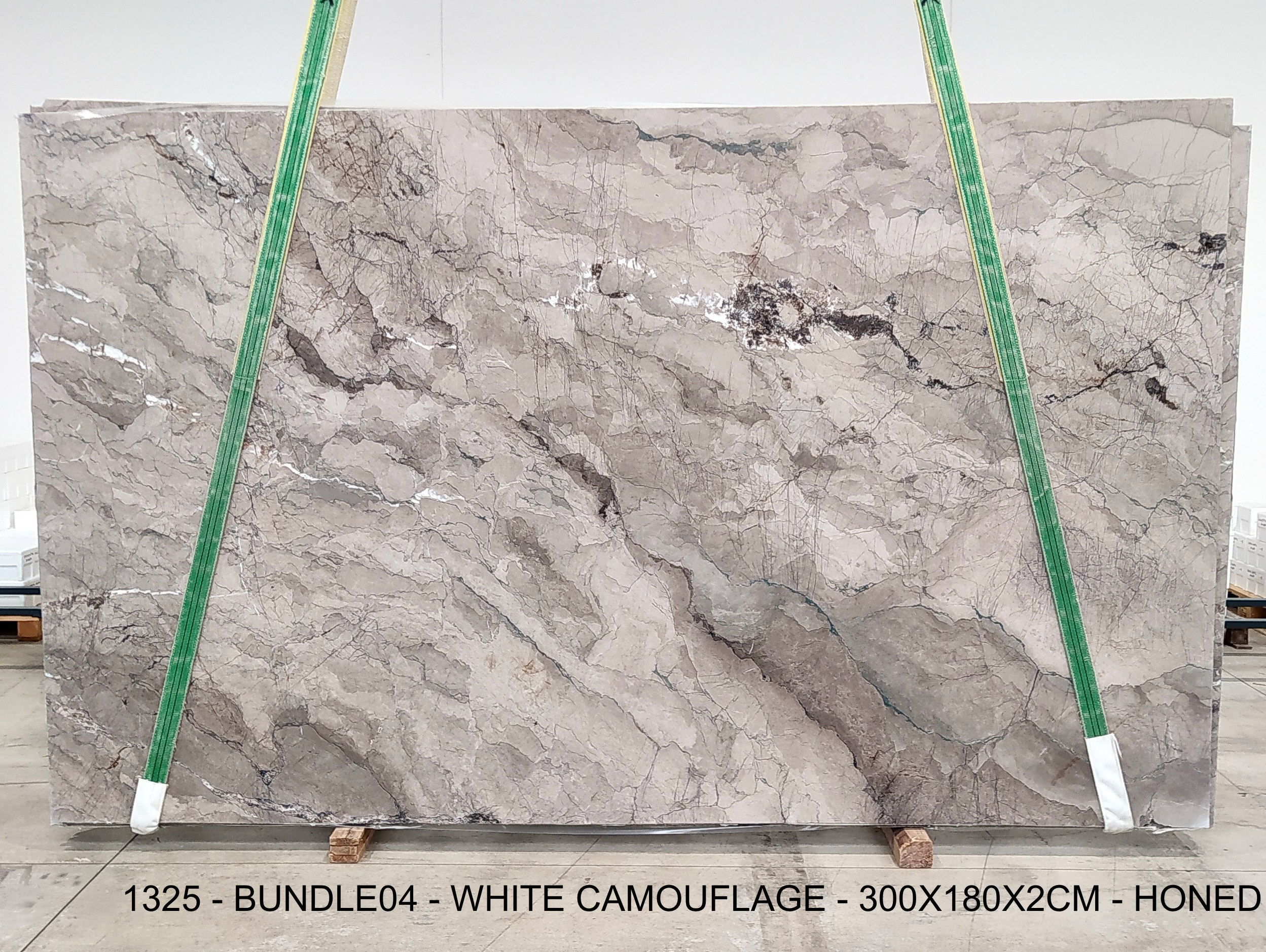 WHITE CAMOUFLAGE (PLST1325 (DC1194)) Quantity Available: 82 Dimension: 300X180; Thickness: 2CM Finish: HONED FINISH